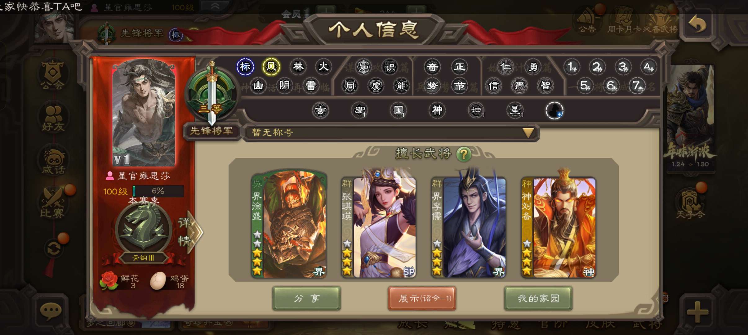 狗托先锋,106宝珠9万羽毛1.18万将魂7万豆,谯周关银屏甘夫人谋卢植崔琰谋于禁143将