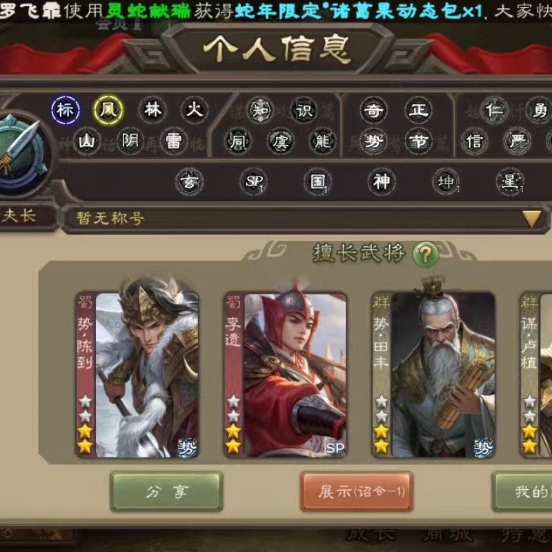 无废将超级兵,32宝珠8万羽毛7250魂,花鬘谯周界黄忠3史诗,甘夫人谋韩当谋小乔70将,140令