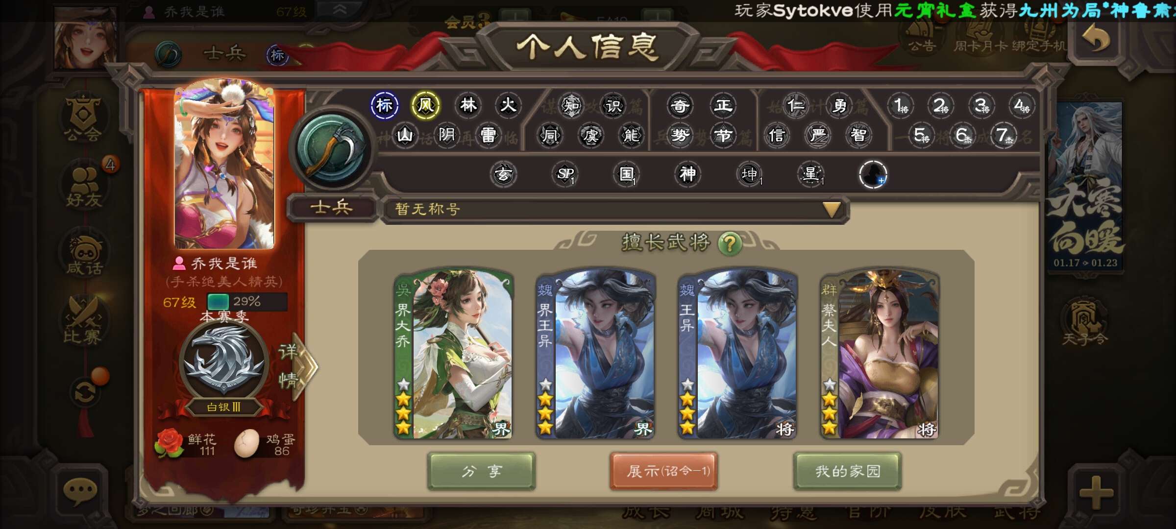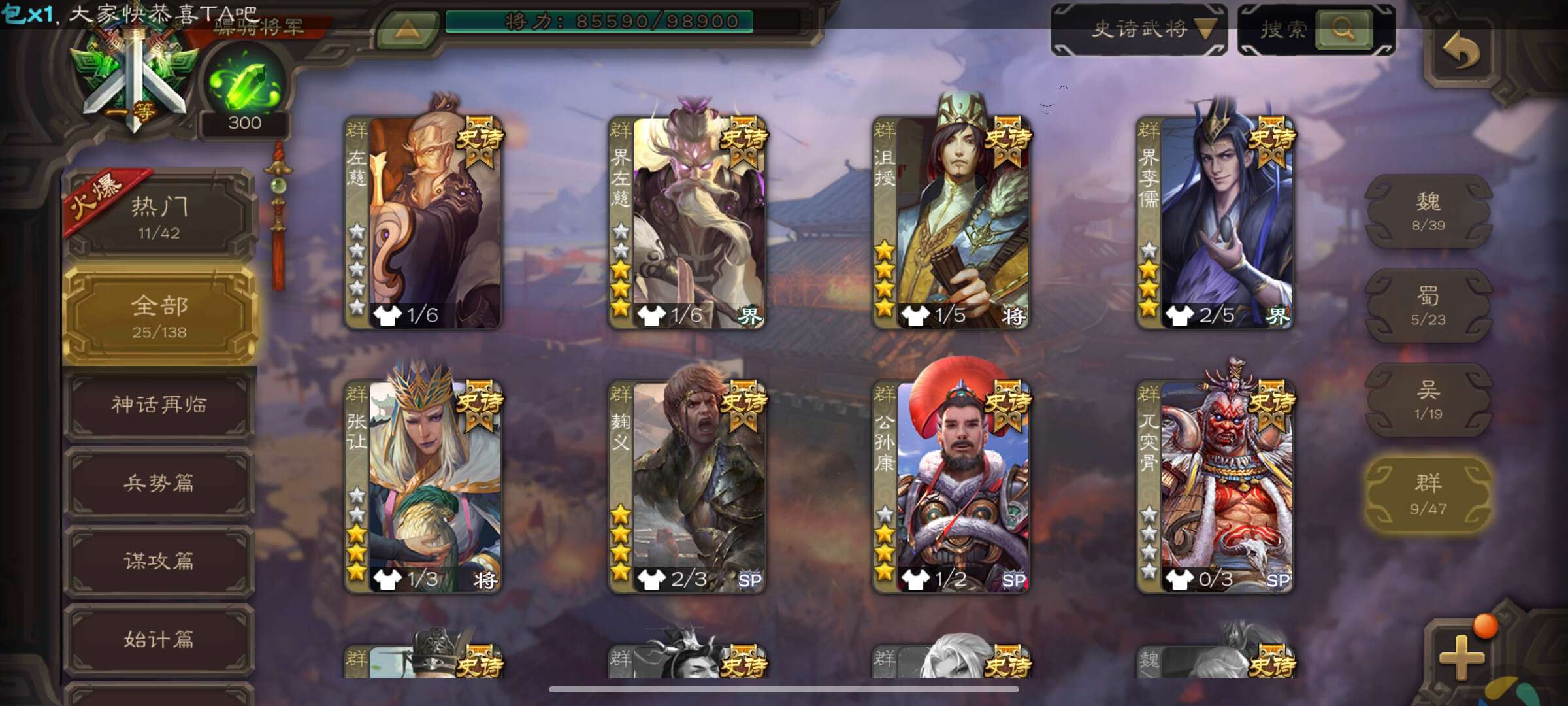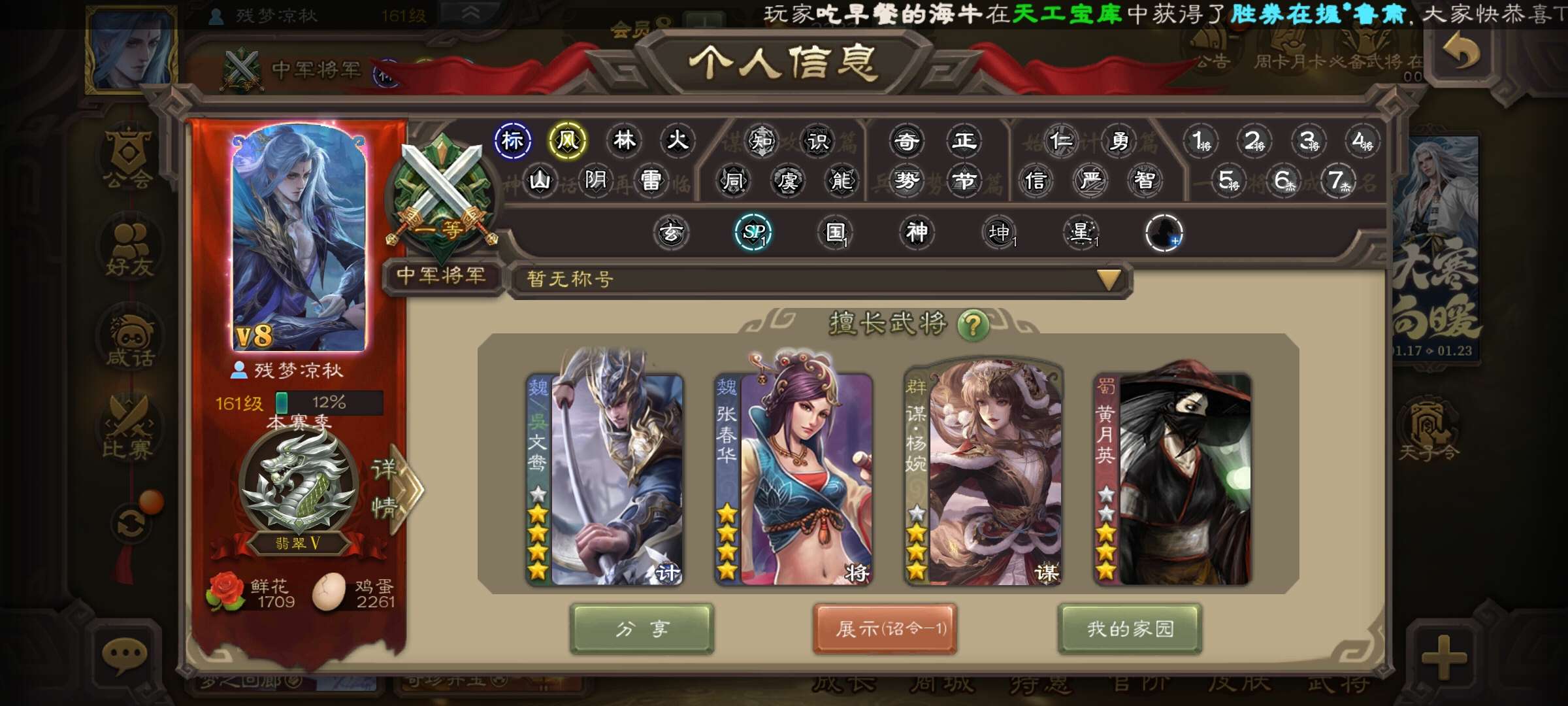 三等大将军 1.2w心愿积分 势太史慈/老宝/大鬼/裴秀/大宝/小鸟/老宝/曹髦