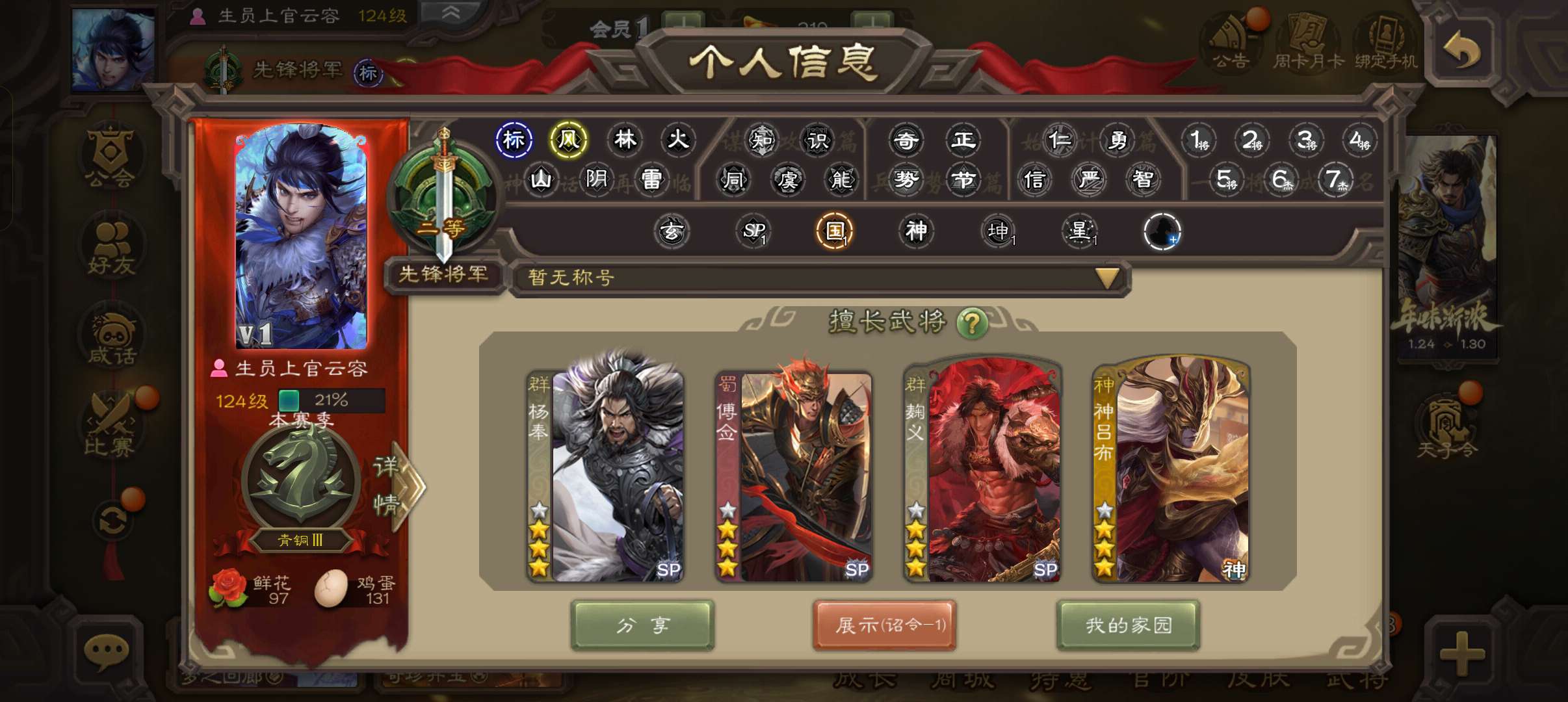 6史诗双神先锋,4万豆,回廊动态界黄忠诸葛瞻界曹真谯周杨修,神周瑜神吕蒙界孙权动态界陆逊143将