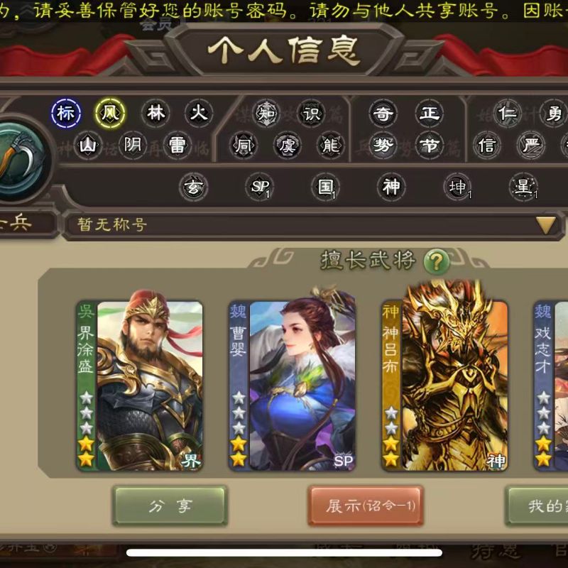 12史诗3神领军,大宝界徐盛动态神吕布界钟会戏志才沙摩柯谋赵云界朱然界于禁谯周杨修曹纯程昱,谋张飞