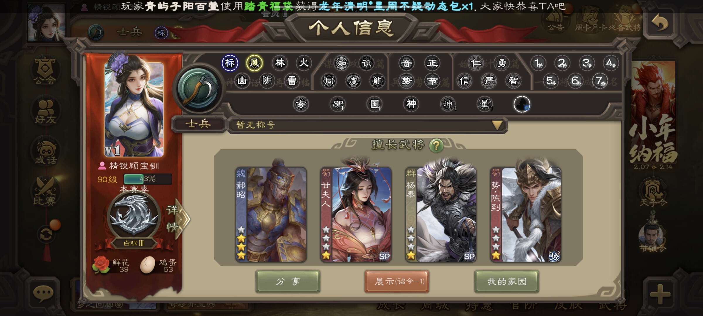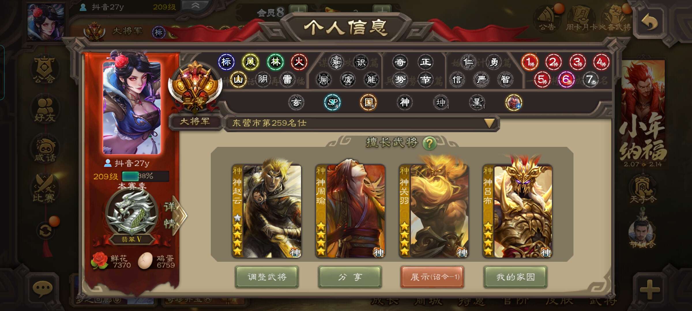 【必带3史诗】神太史慈+嵇康+谯周+2000将魂+5W羽毛★可绑手机改密【官服通用】