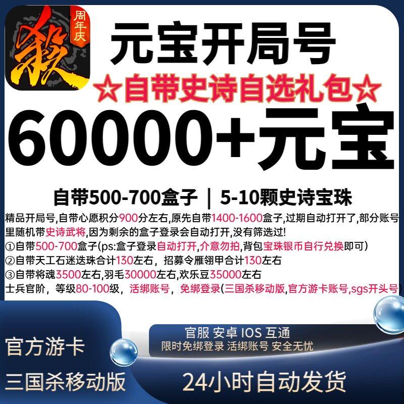 三国杀移动版6W6万千盒初始号号元宝号盒子号手游自抽号官方