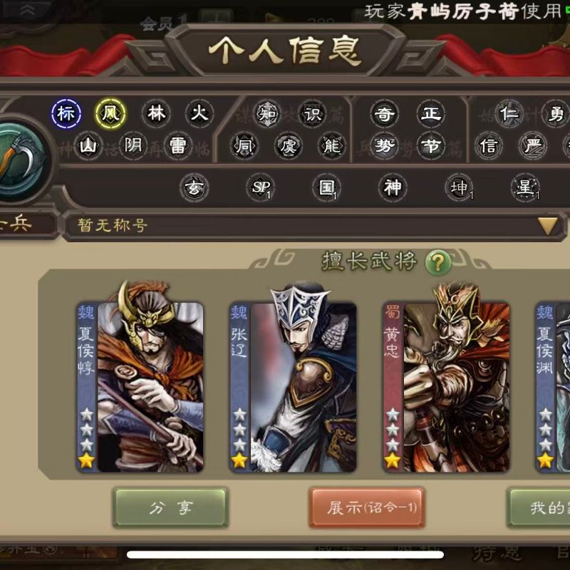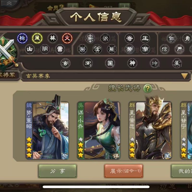 中军5史诗势董昭 动星甘宁 白马 星黄忠三卡