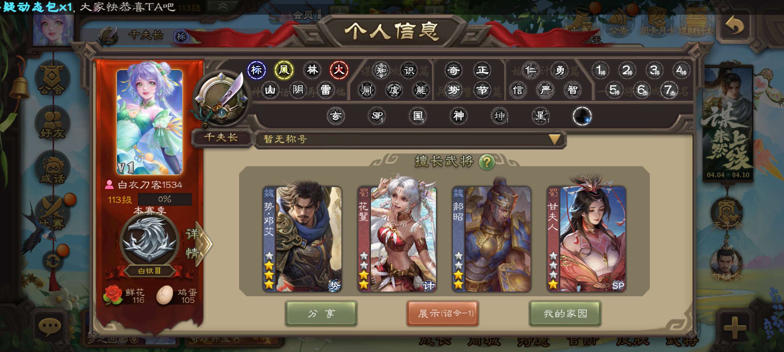势邓艾+花鬘+郝昭精品千夫长开局号!三卡材料充足,官服字母格式活绑