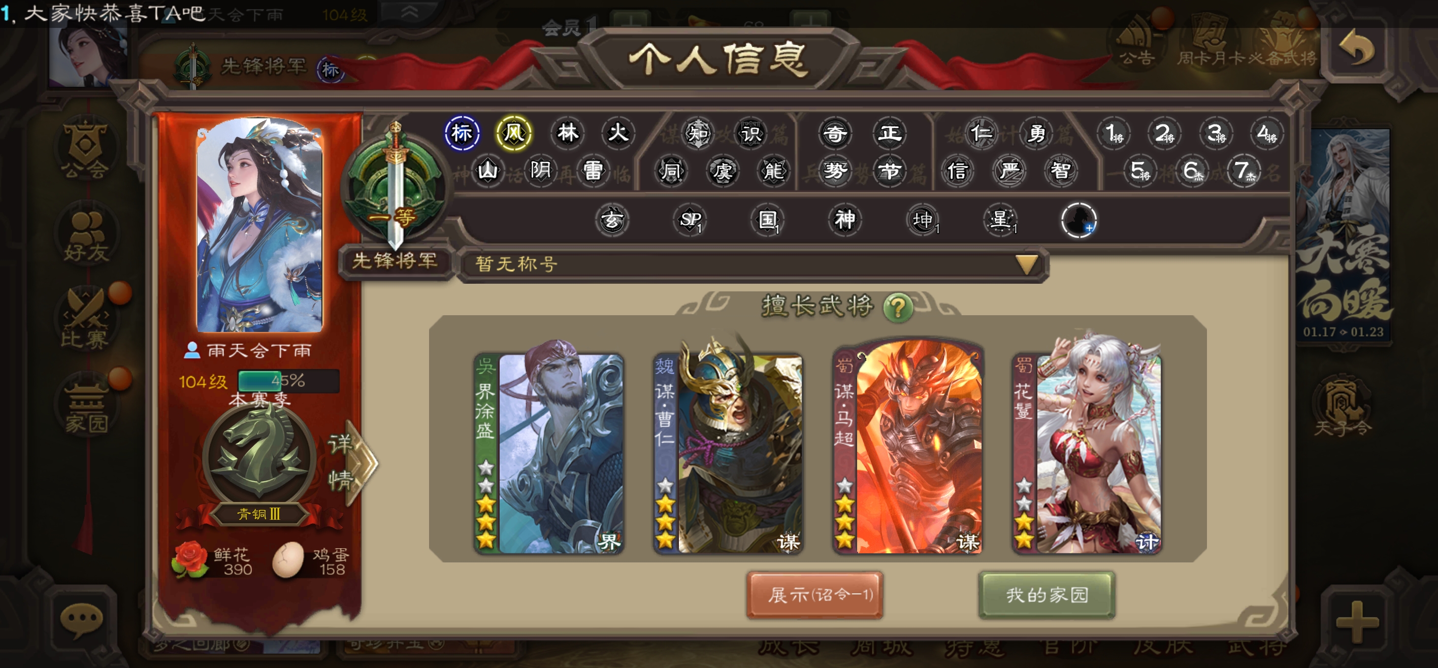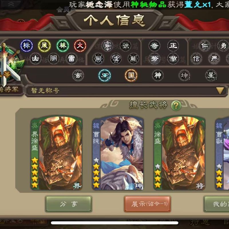 1.1万将魂7万羽毛5.9万豆,天工孟达,界钟会沮授双史诗先锋,甘夫人彭恙张布146将