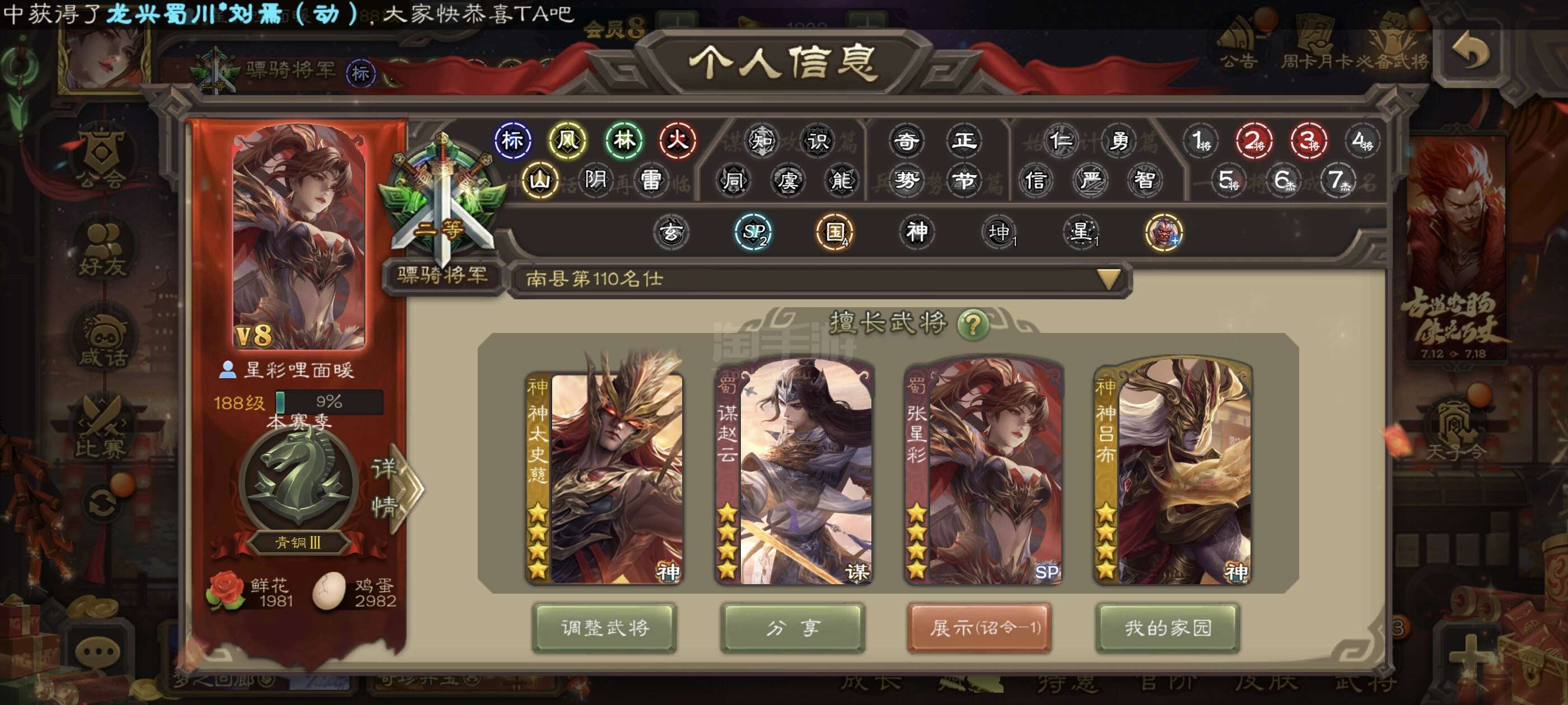 玉龙神鲁肃+动态星甘宁+星黄忠+公孙康+董允等9史诗中军将军!官服字母格式活绑