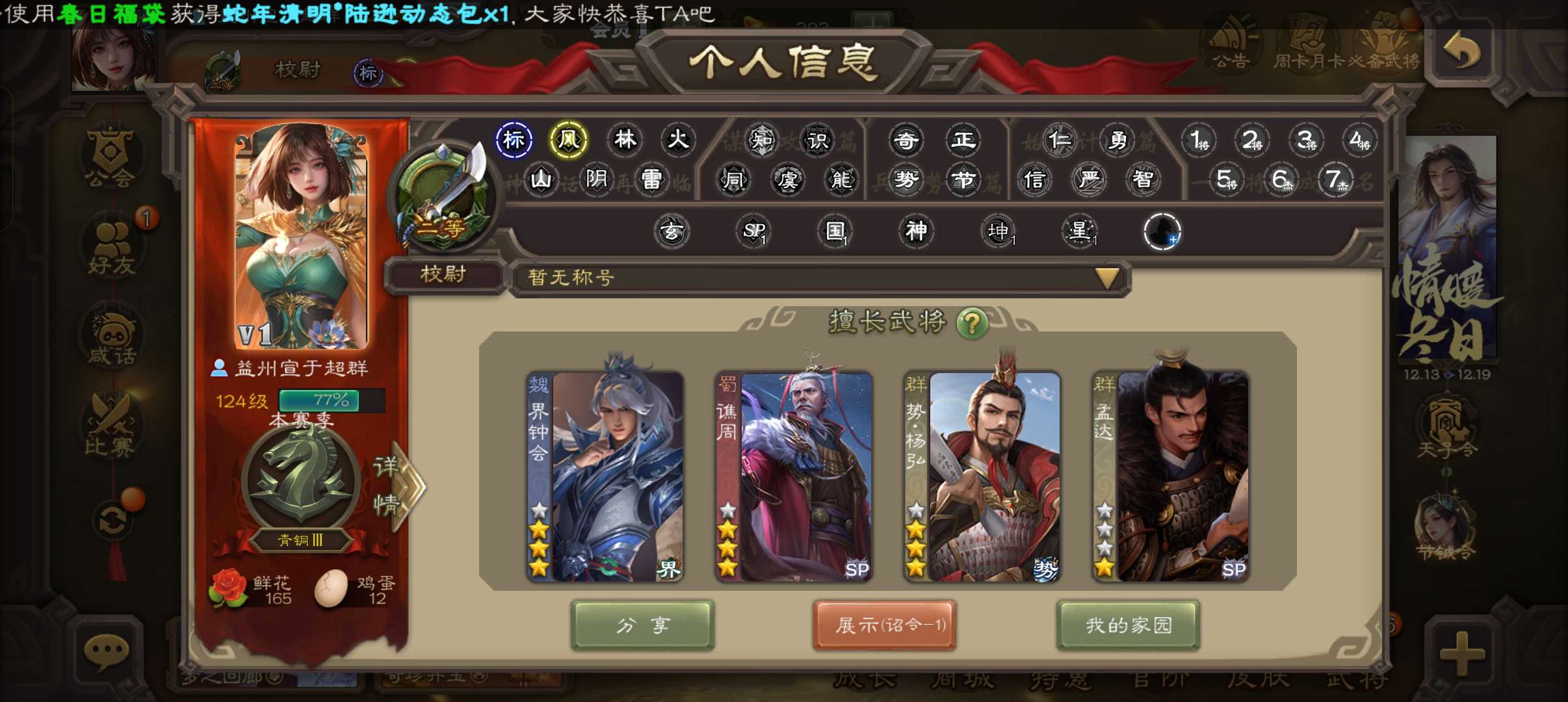 官服活绑三等骠骑,界沮授,星魏延,回廊白马动皮,神赵神吕布等史诗,天宫李逵三卡充足,四千五百多毛和魂