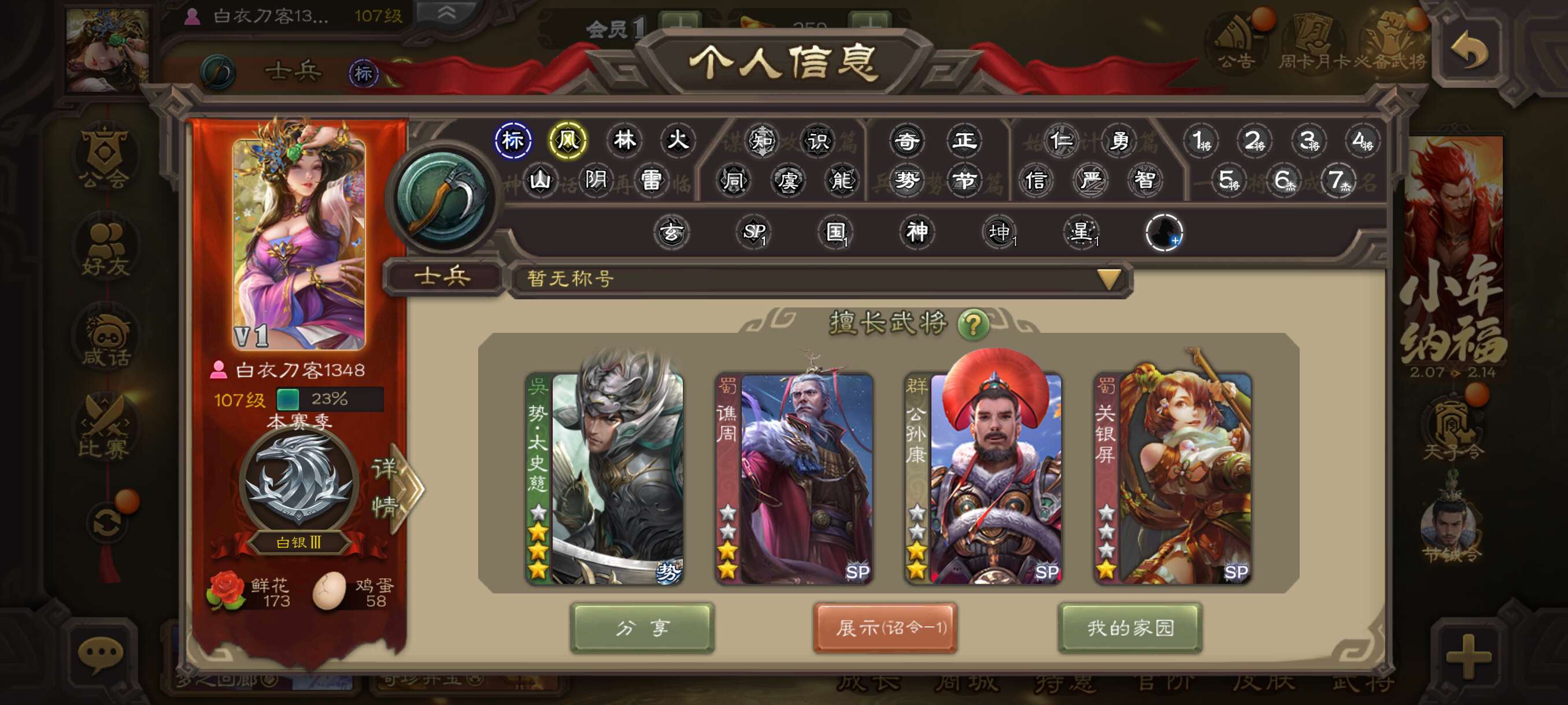 势太史慈+公孙康+谯周超级士兵开局号!总将68,材料充足,官服字母格式活绑