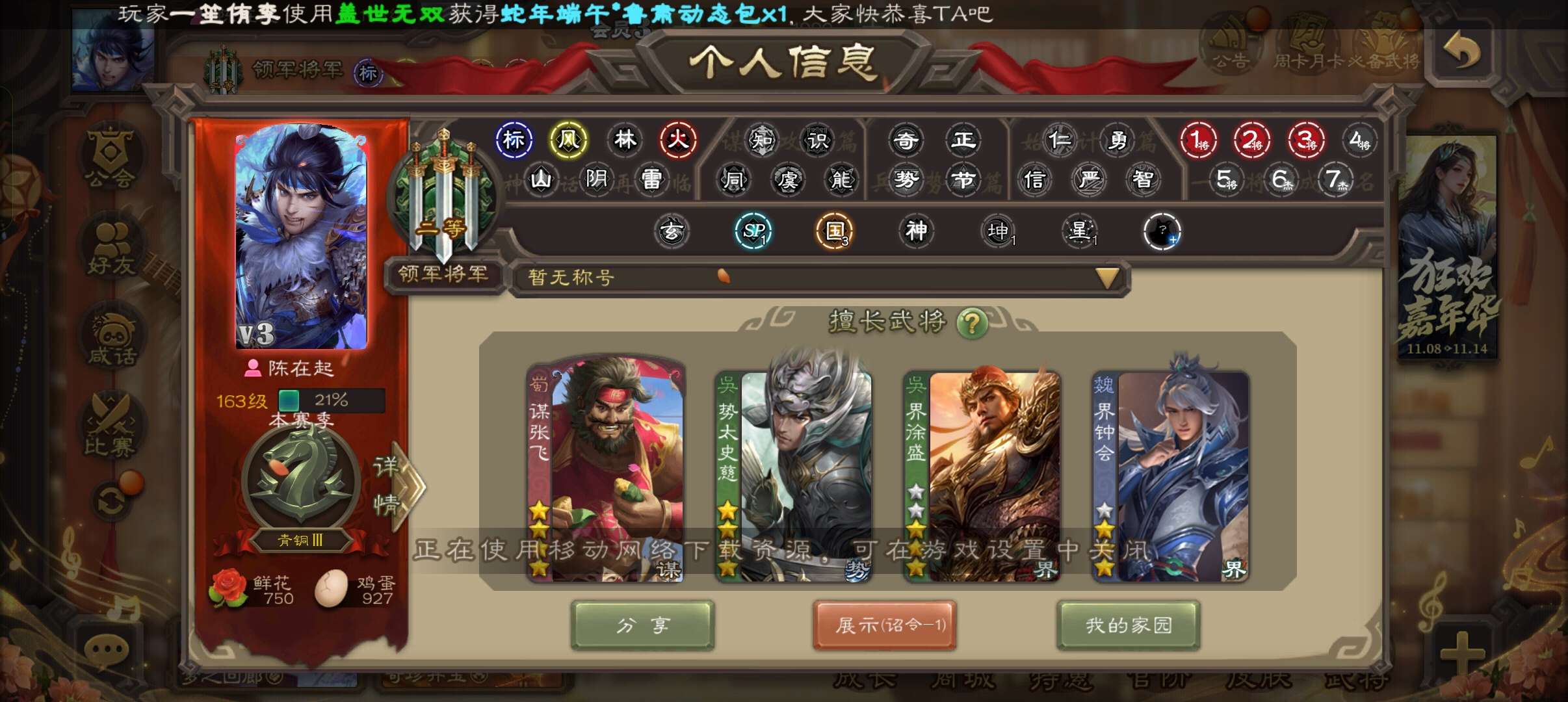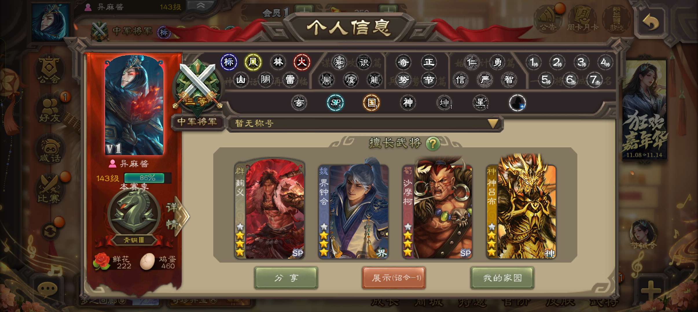四权一大将军积分马上还能换一个,权三多多,九游可转移号