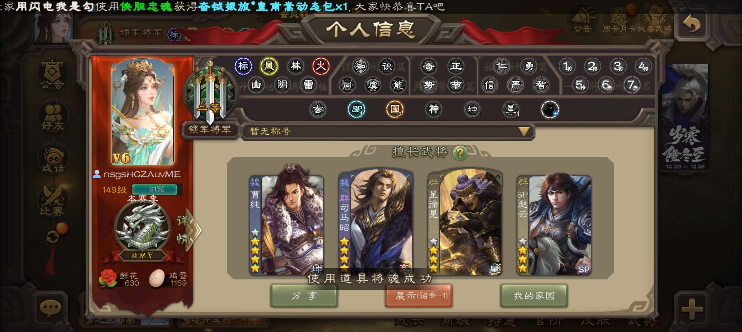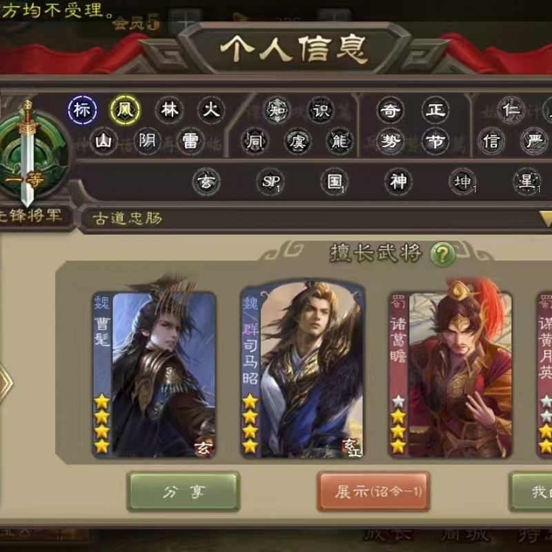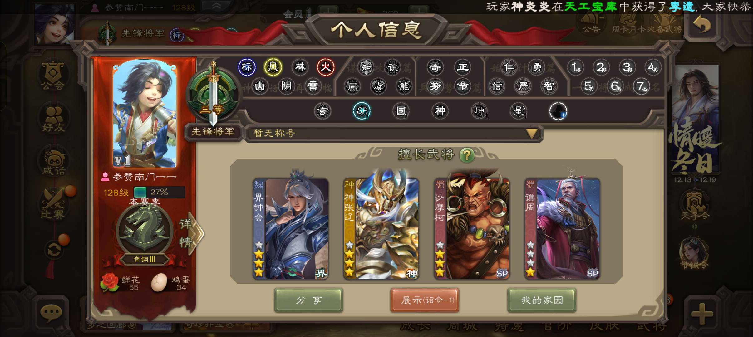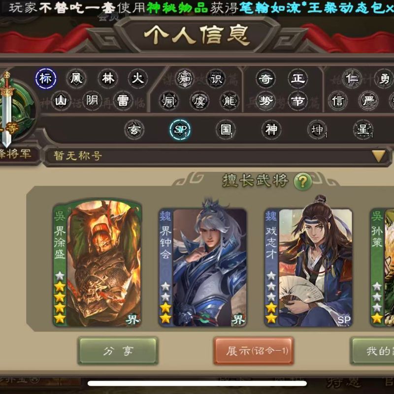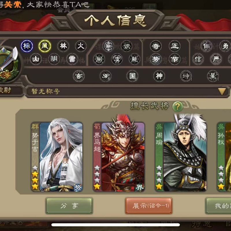 5史诗先锋,2950魂4.8万羽毛4.7万豆,界钟会沙摩柯神张辽谯周马云騄,动曹冲霍峻谋卢植138将