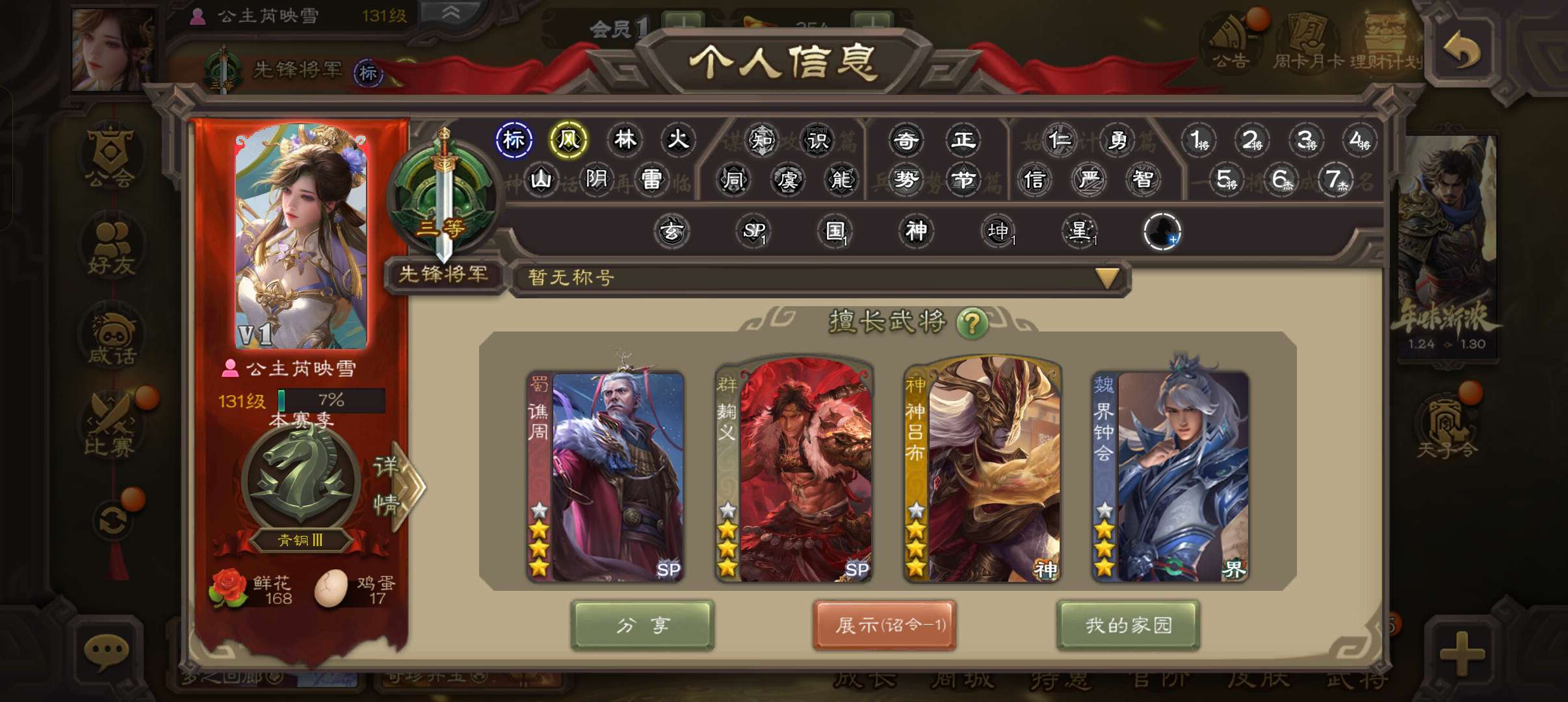 4480将魂7万羽毛4.9万豆,界钟会星黄忠双史诗先锋,甘夫人界孙权谋卢植崔琰135将
