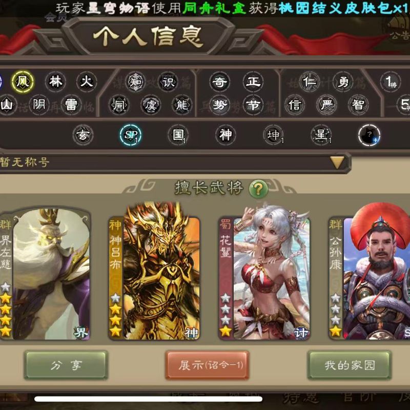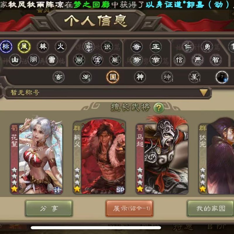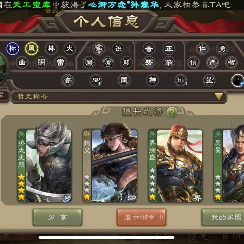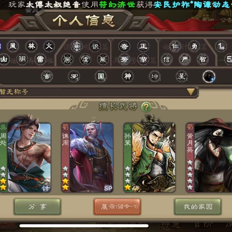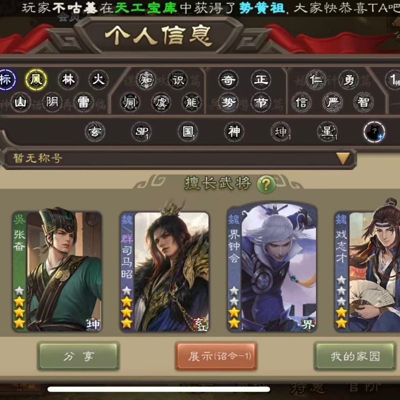 先锋动态神司马懿留赞神刘备吴景界黄忠三卡7200将魂