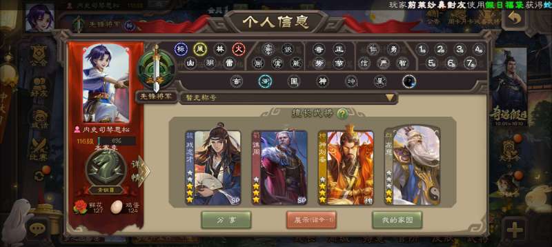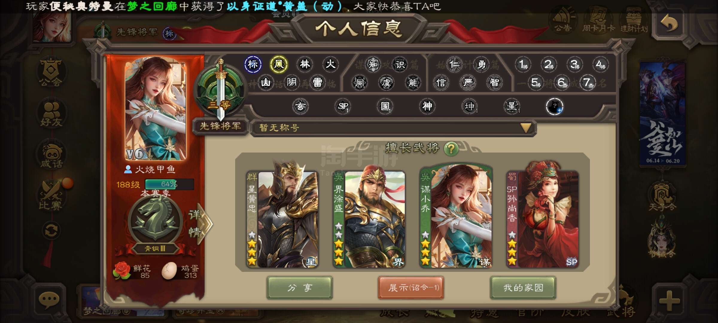 5史诗双神先锋,6万豆4万4羽毛,回廊动白马张让界朱然谯周左慈,神周瑜神吕蒙谋韩当甘夫人145将