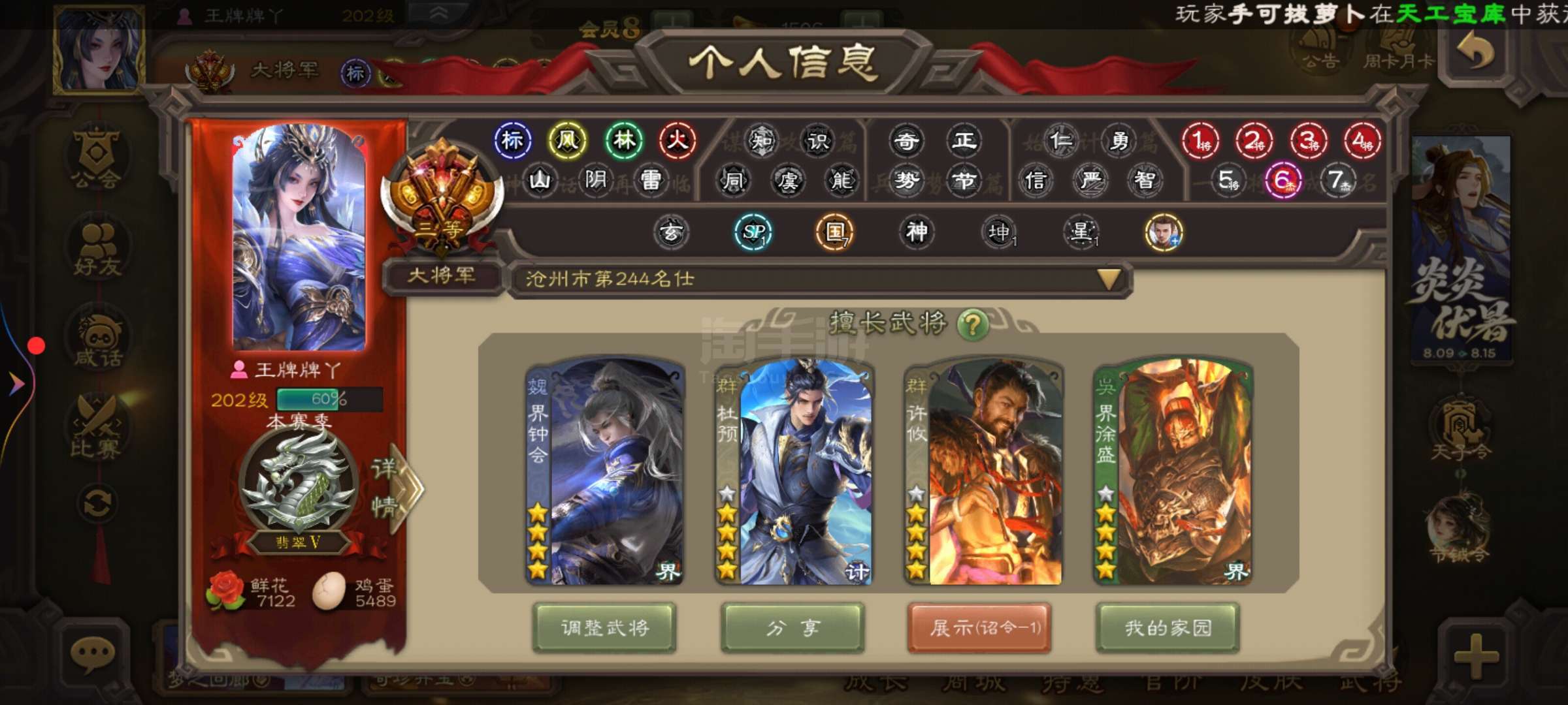 安卓官方 大将军号 出了截图里的武将其他的都有了 超多史诗权益将 动态皮充钱不如买号,
