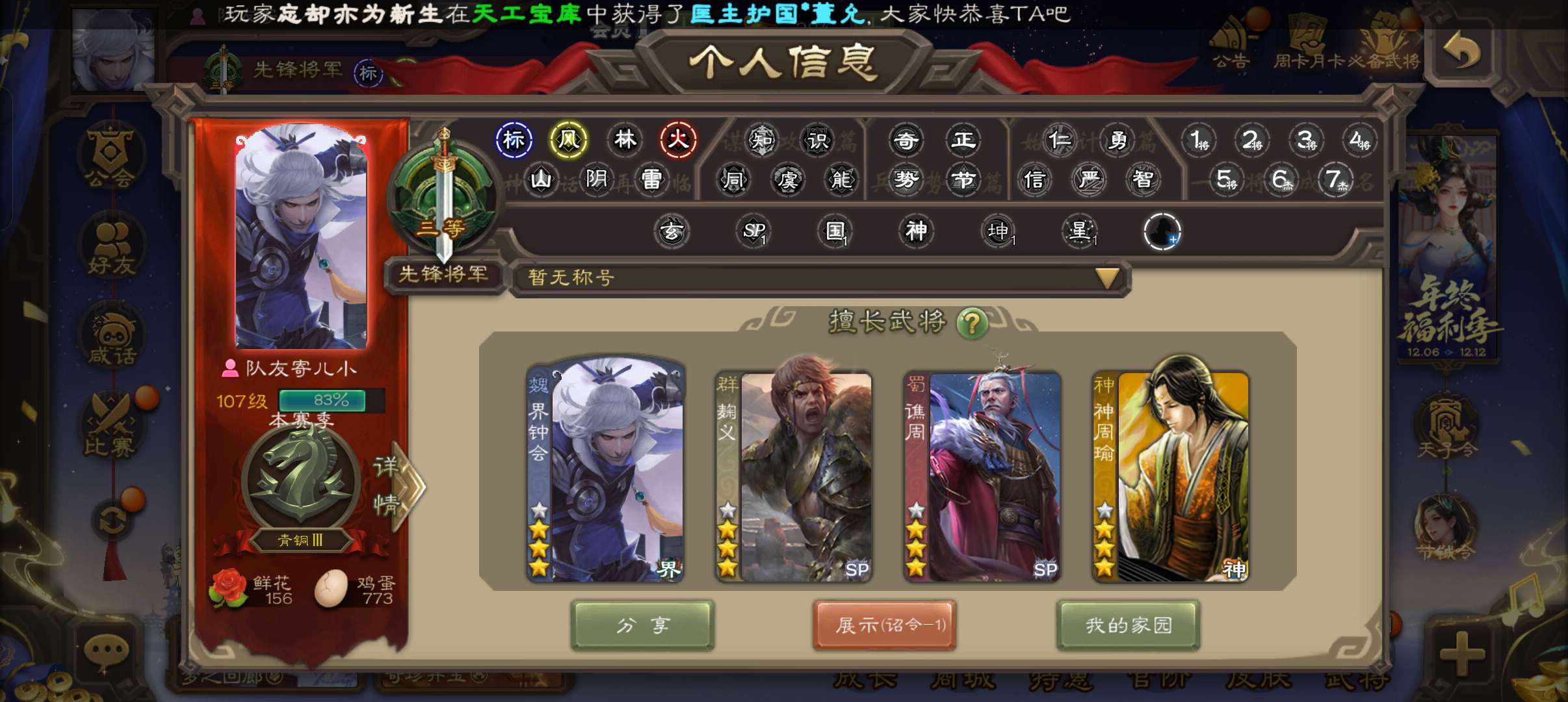 3史诗双神先锋,乌鸦动态界钟会白马谯周,神周瑜神吕蒙谋韩当崔琰彭恙137将