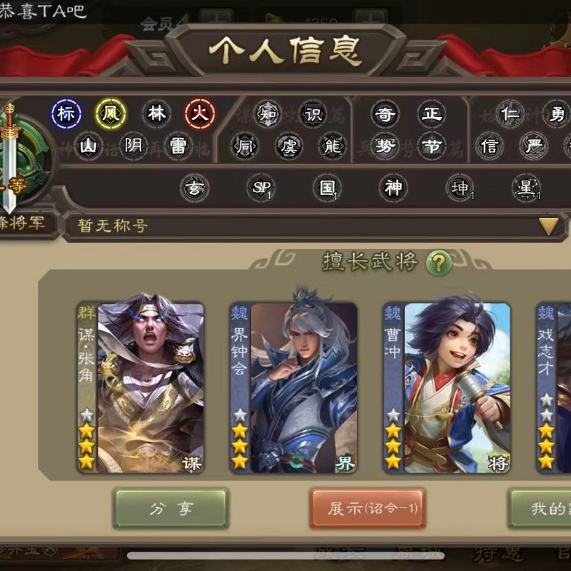 9史诗中军,蒋济界钟会神刘备谯周花鬘界黄忠沮授杨修程昱,神吕蒙真动界吕布动诸葛果动界陆逊187将