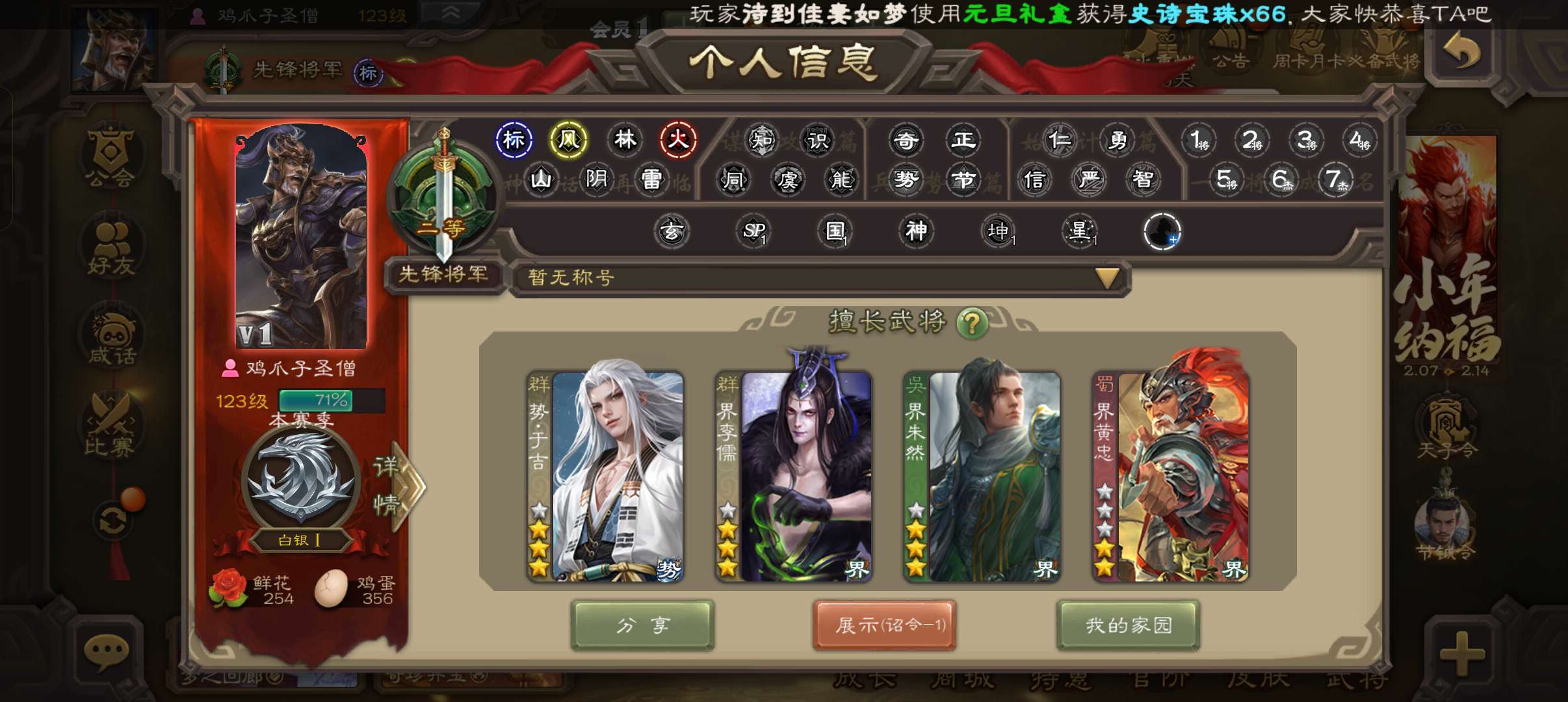 3800将魂7.8万羽毛,势于吉界李儒界朱然界黄忠4史诗先锋,甘夫人谋卢植势陈到界孙权146将