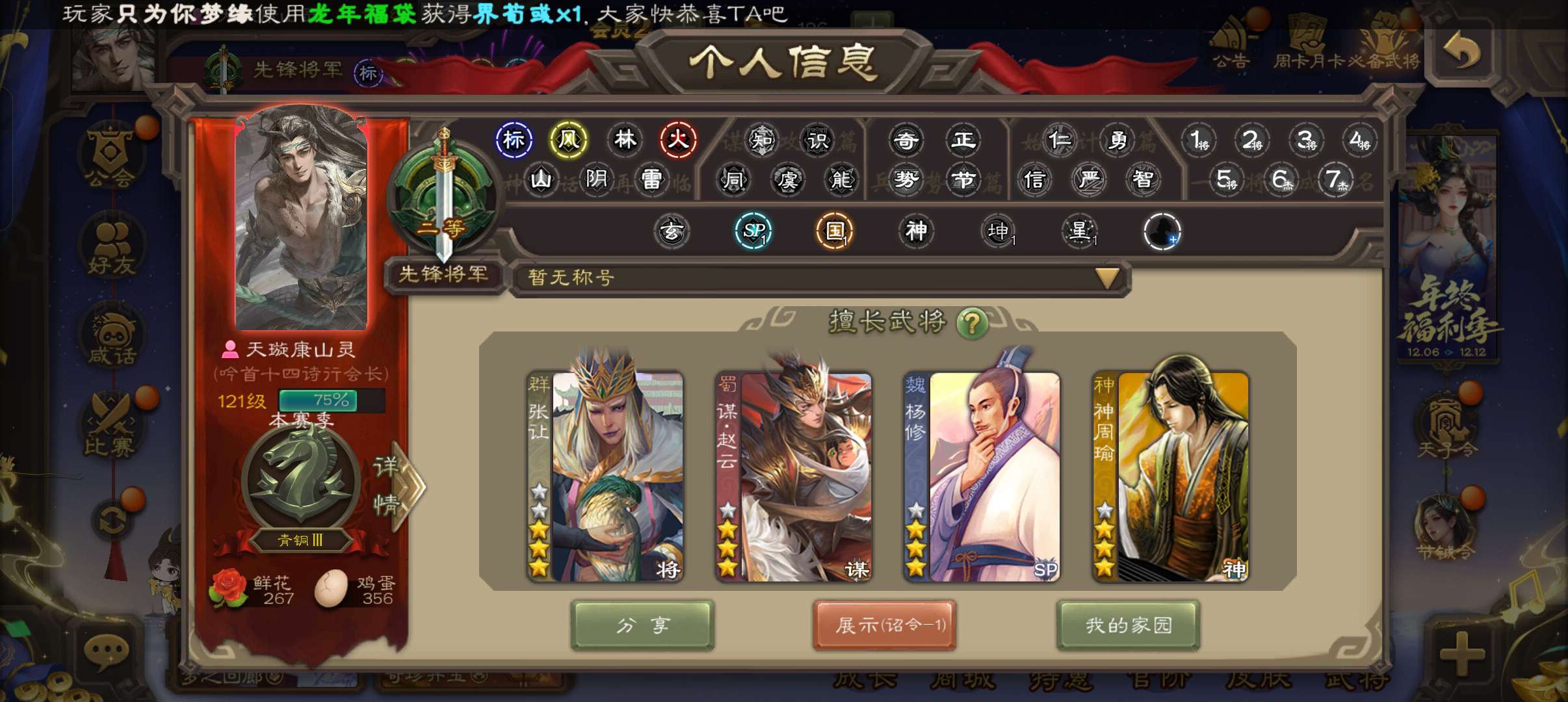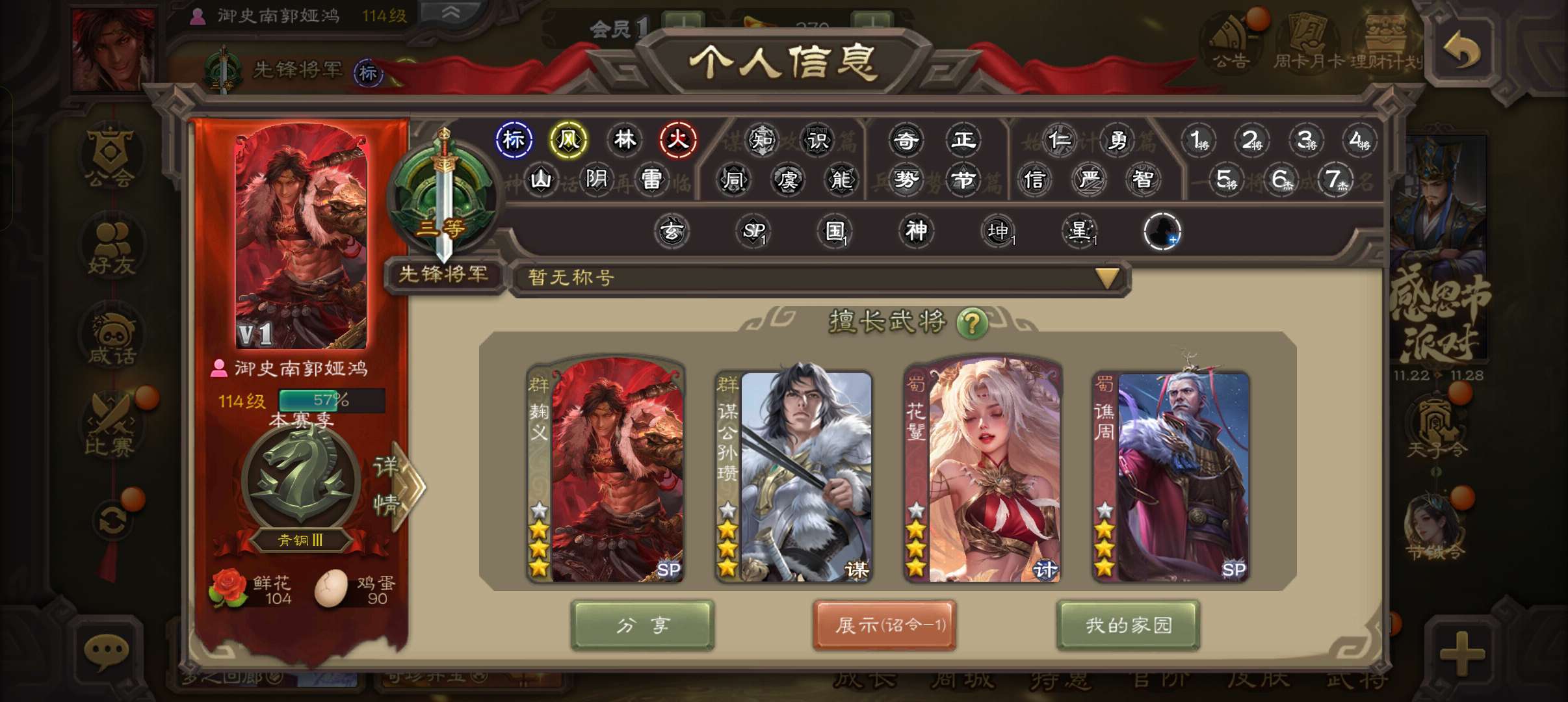 公会会长,3史诗先锋,张让谋赵云杨修,神周瑜界吕布阮慧界张嶷147将