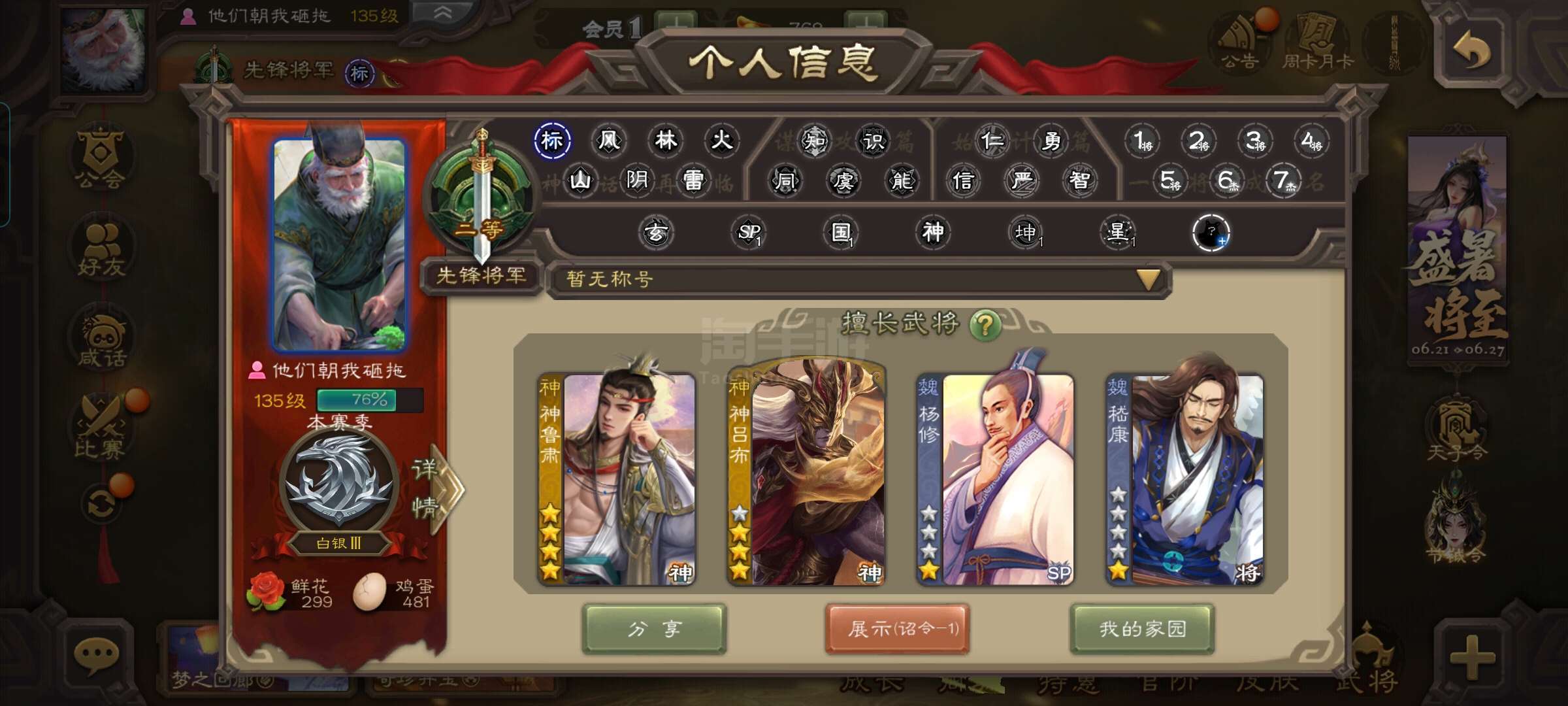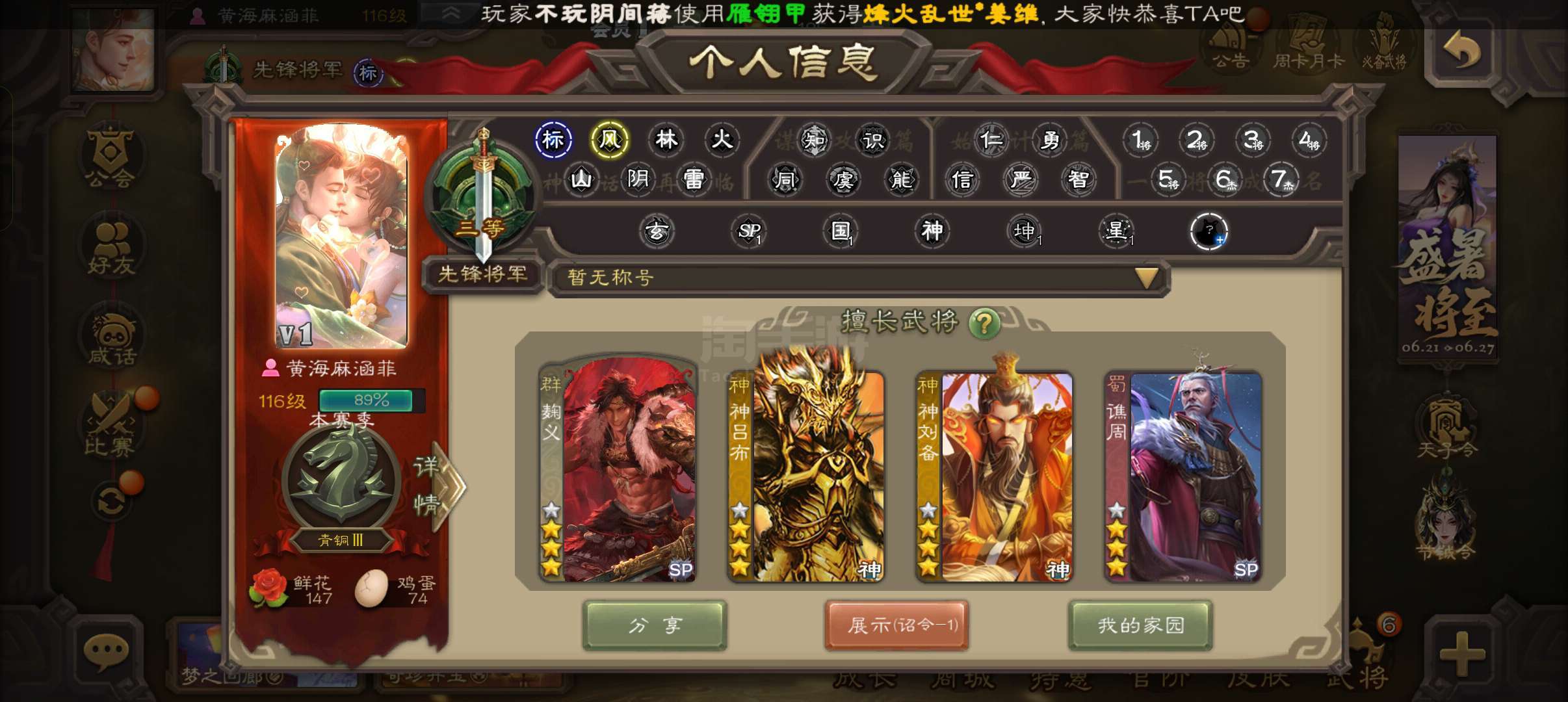 4.3万羽毛,回廊动白马神吕布神刘备花鬘谯周贺齐6史诗先锋,动态界陆逊谋韩当谋陆逊孙邵崔琰145将