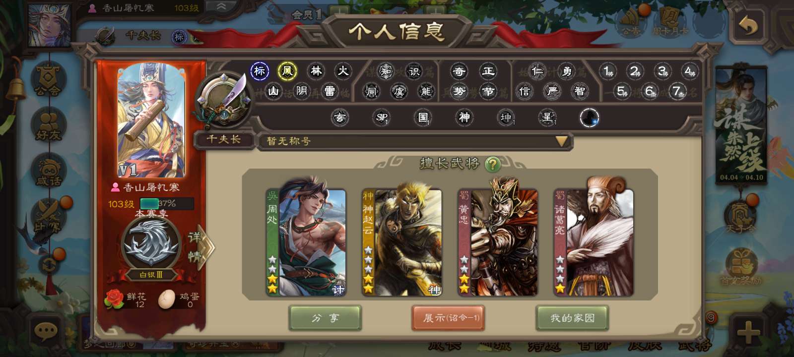 5史诗双神先锋,6万豆4万4羽毛,回廊动白马张让界朱然谯周左慈,神周瑜神吕蒙谋韩当甘夫人145将