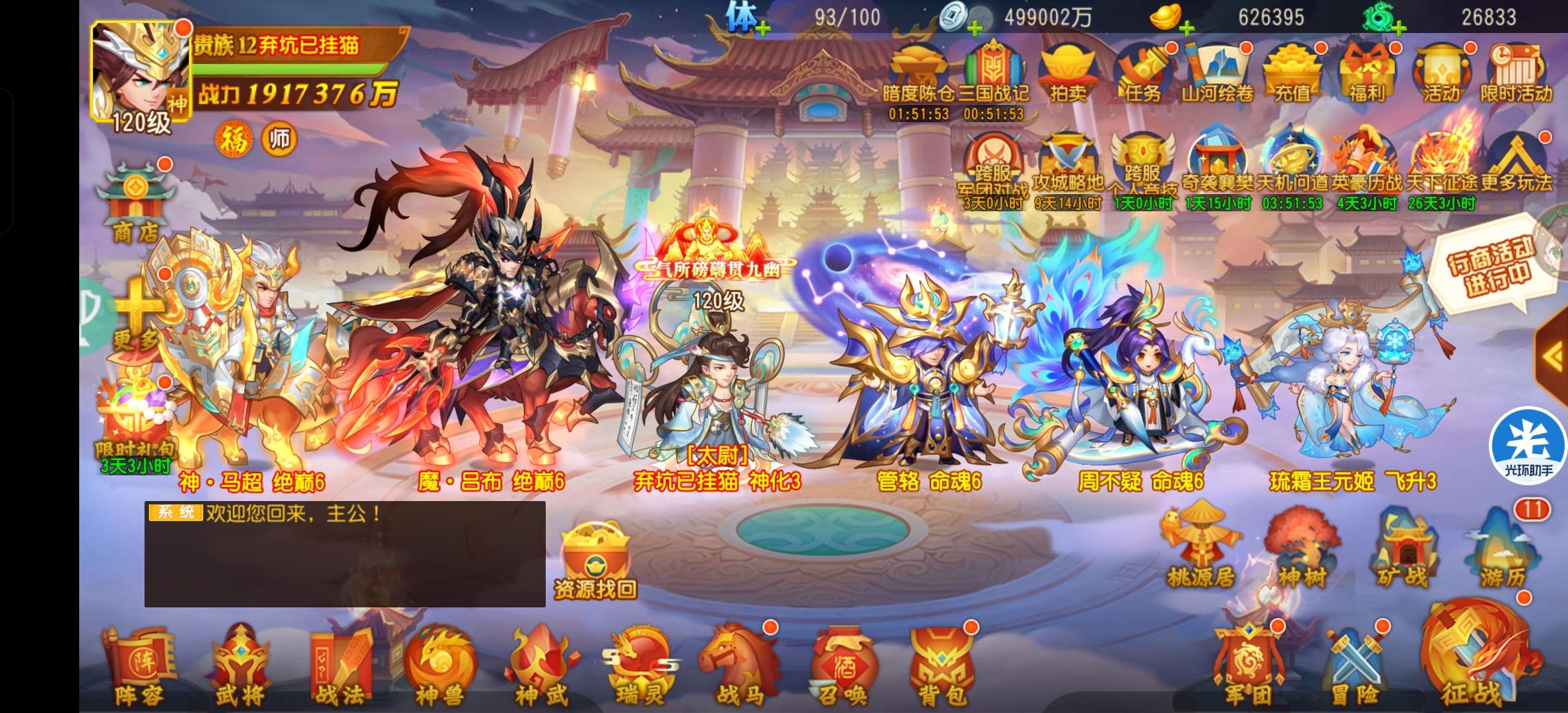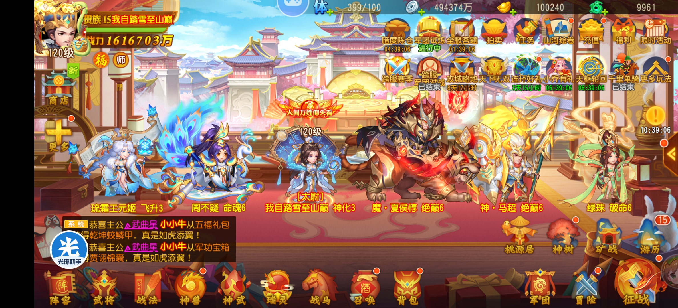 太尉:3将3破6(顶配)神装、武将道具齐全