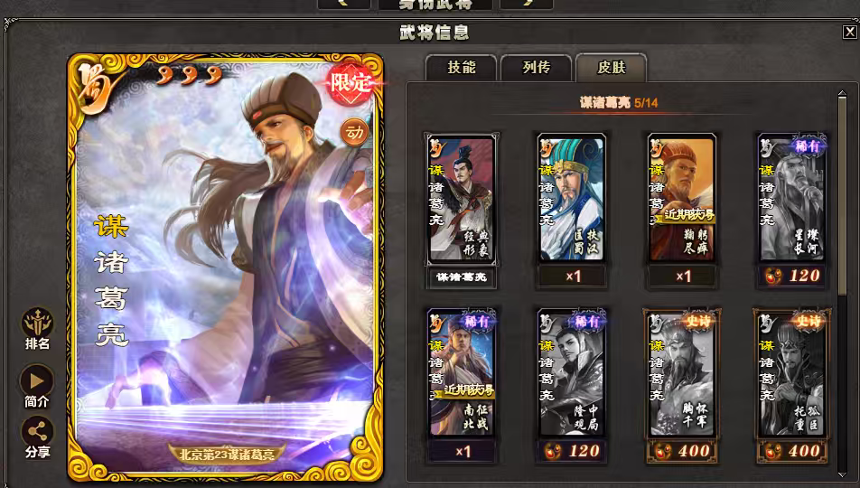 三国杀ol账号互通版60武将80级国战5000元宝20+皮肤