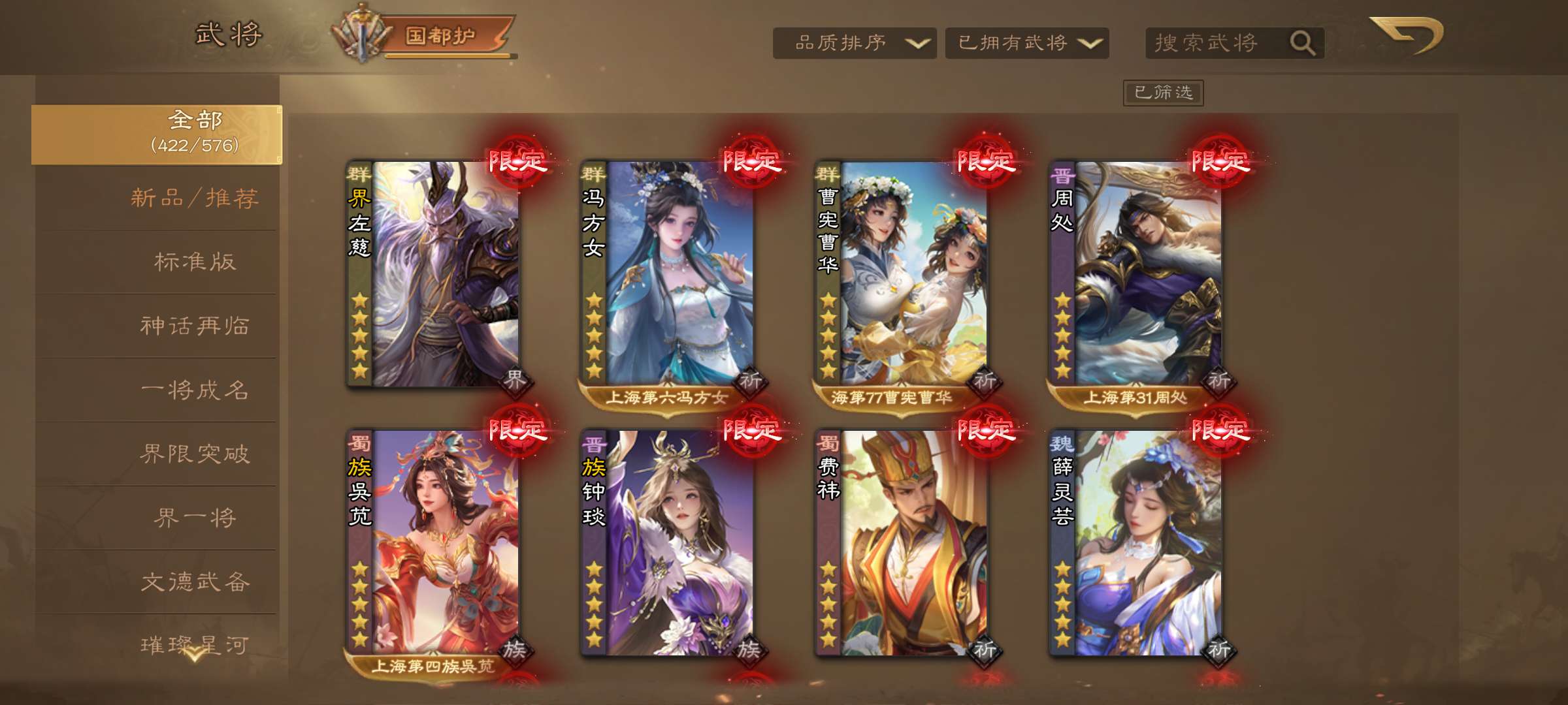 国都护张华族钟琰族荀攸刘辩杨仪SP刘备花鬘皮精品死绑,陈登界荀彧曹曦SP张郃孔淑谋太史慈张燕