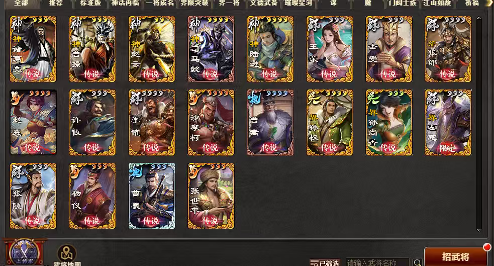双人号,曹宪曹华传动皮,卫兹,杨仪,界徐盛,司马徽,神张角,王荣,SP张郃,程煜,族韩韶,阎柔,谯周