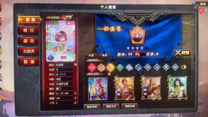sisisi绑活跃度一般强将号13传说293武将体验超强,找回包售后 赠送谋鲁肃账号
