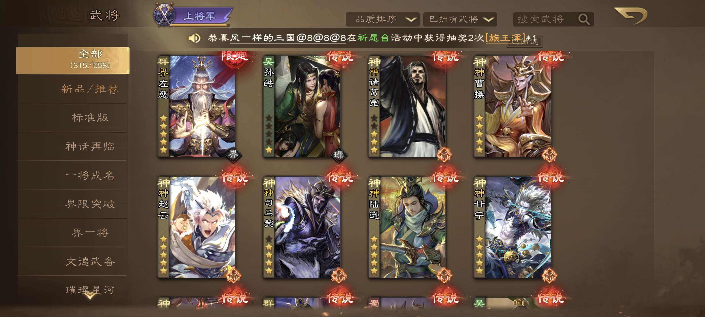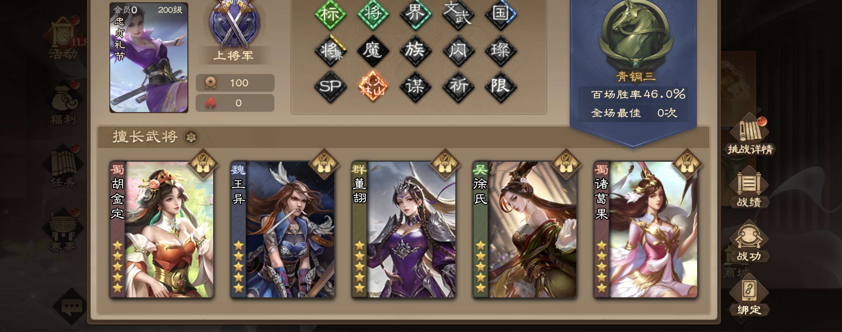sisisi绑超级强将号由于活跃度还行偏上便宜卖344武将22传说族钟衍大宝花花谋庞统找回包售后