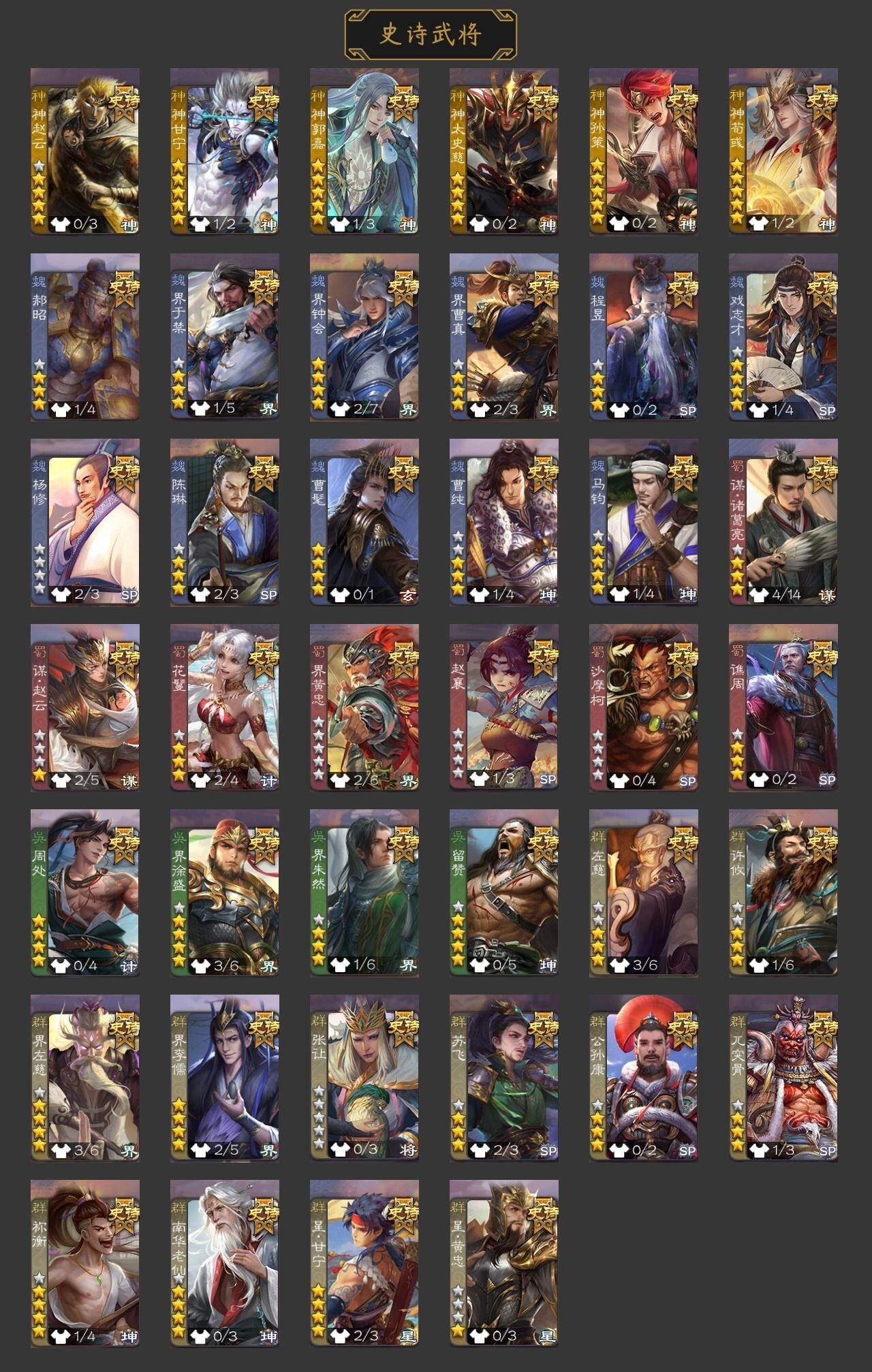 官阶:大将军;VIP等级:VIP9;史诗武将数量:41;动态皮肤数量:37;