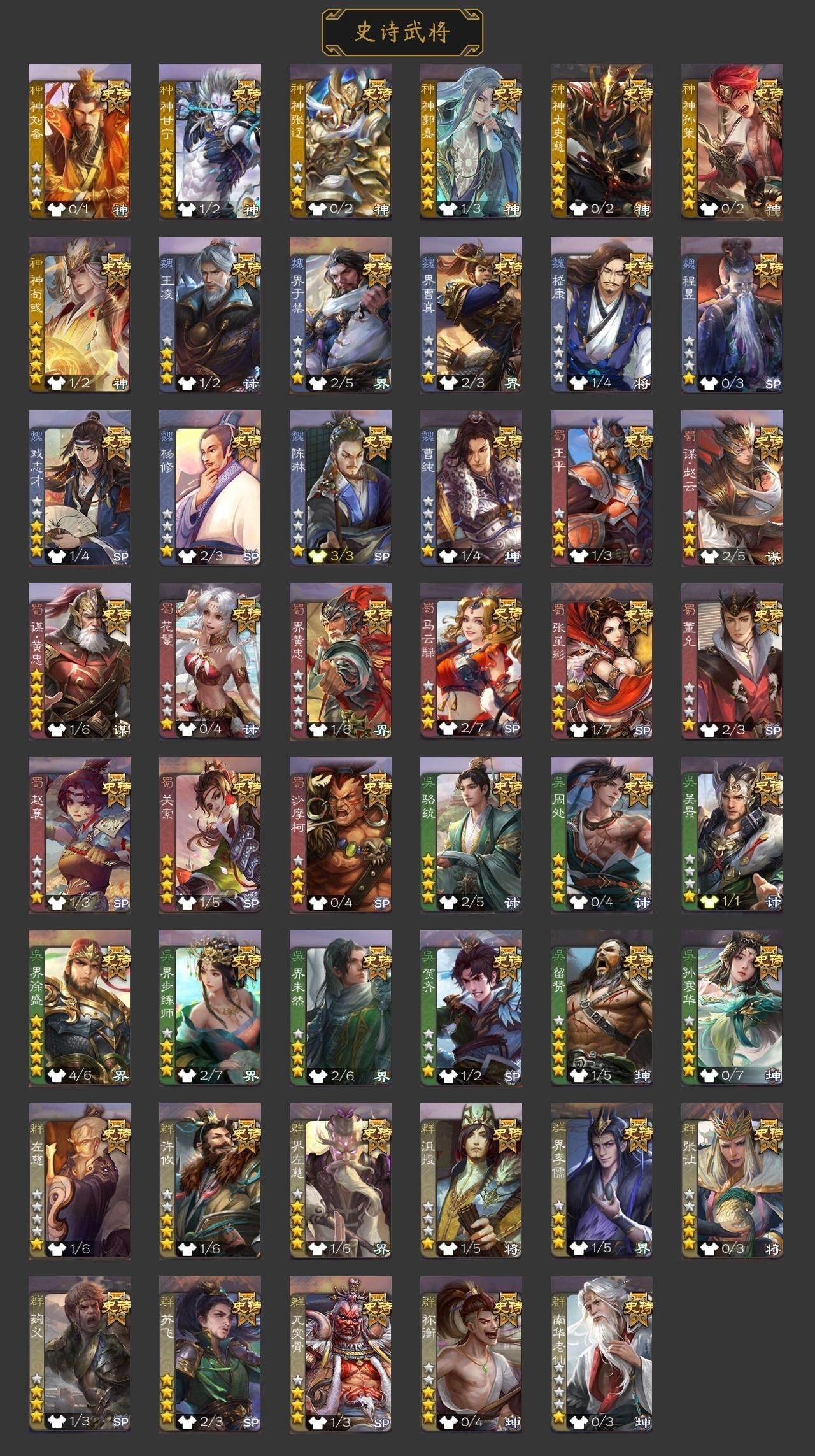 官阶:大将军;VIP等级:VIP10;史诗武将数量:48;动态皮肤数量:47