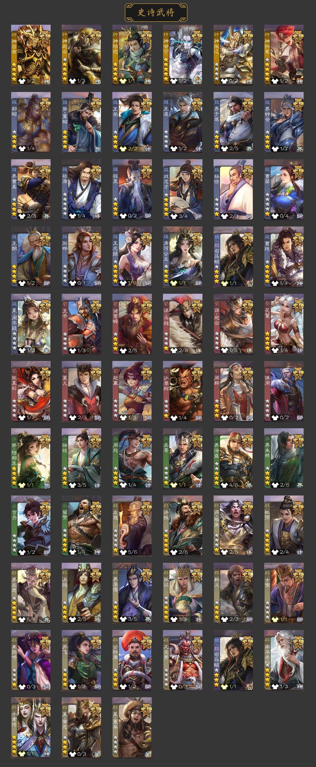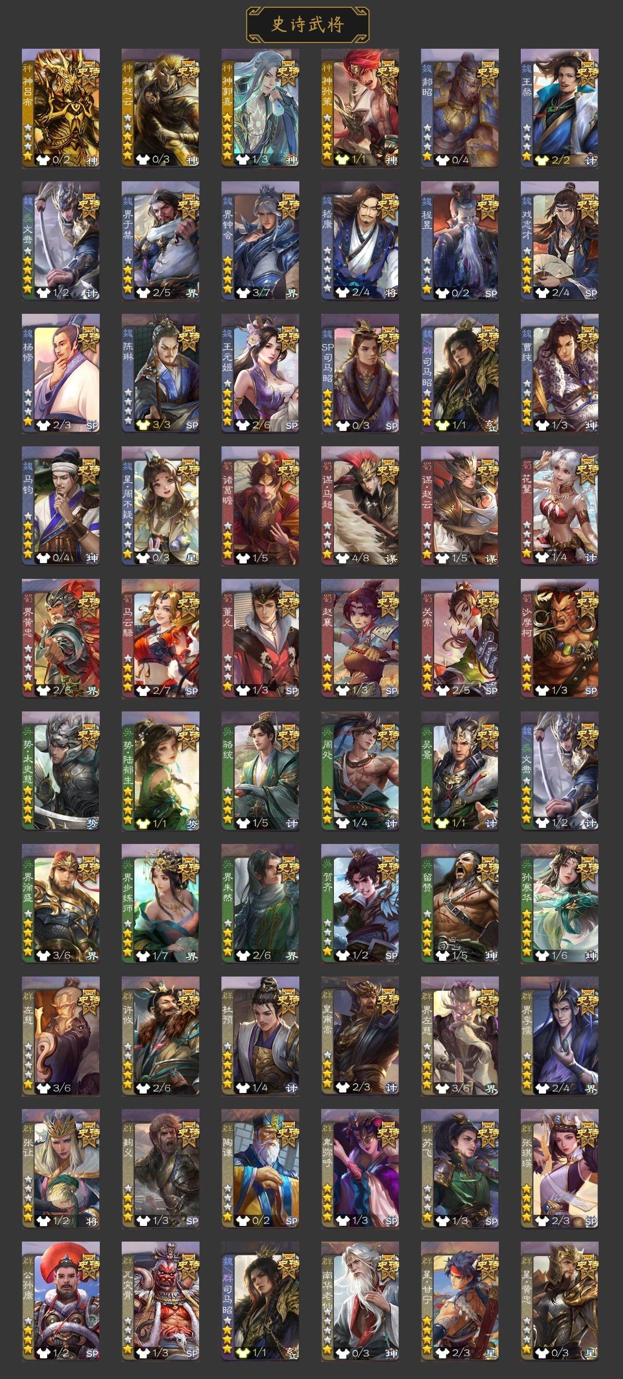 官阶:大将军;VIP等级:VIP9;史诗武将数量:40;动态皮肤数量:32;