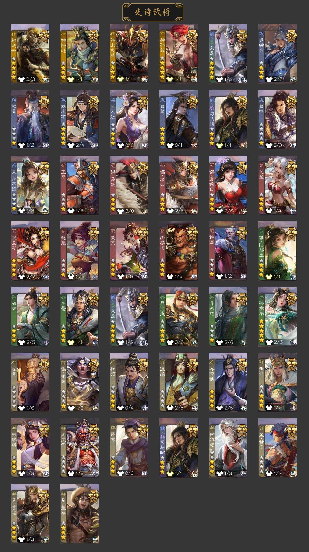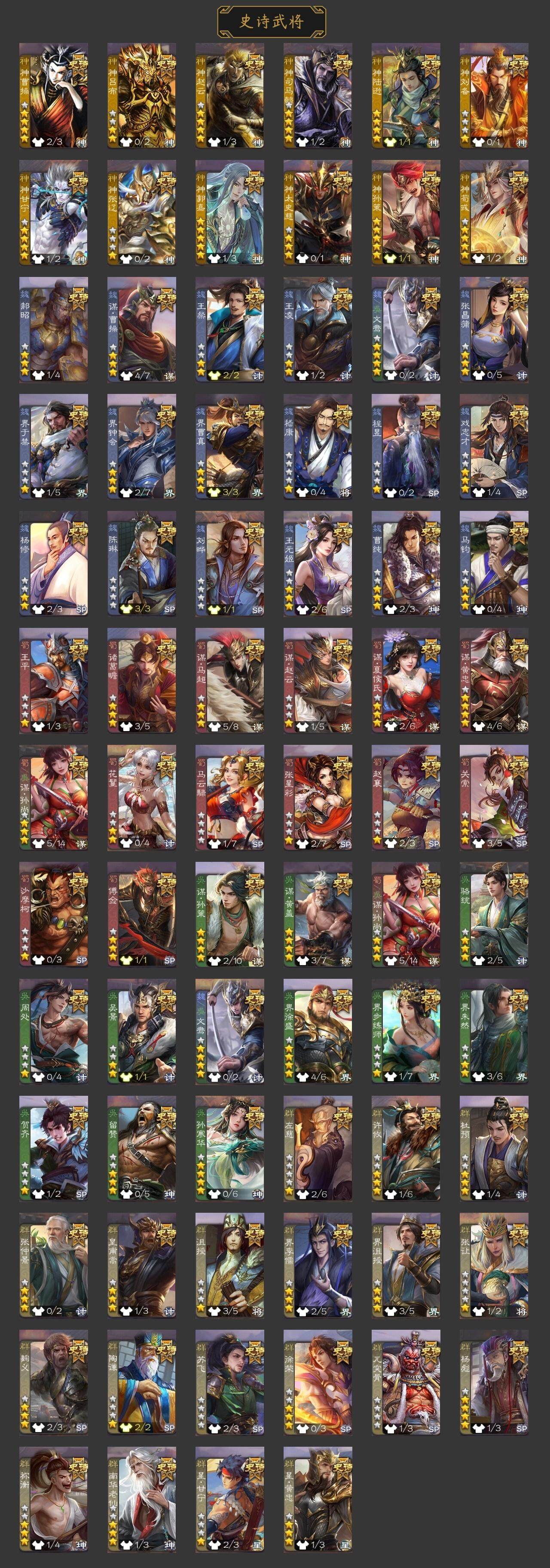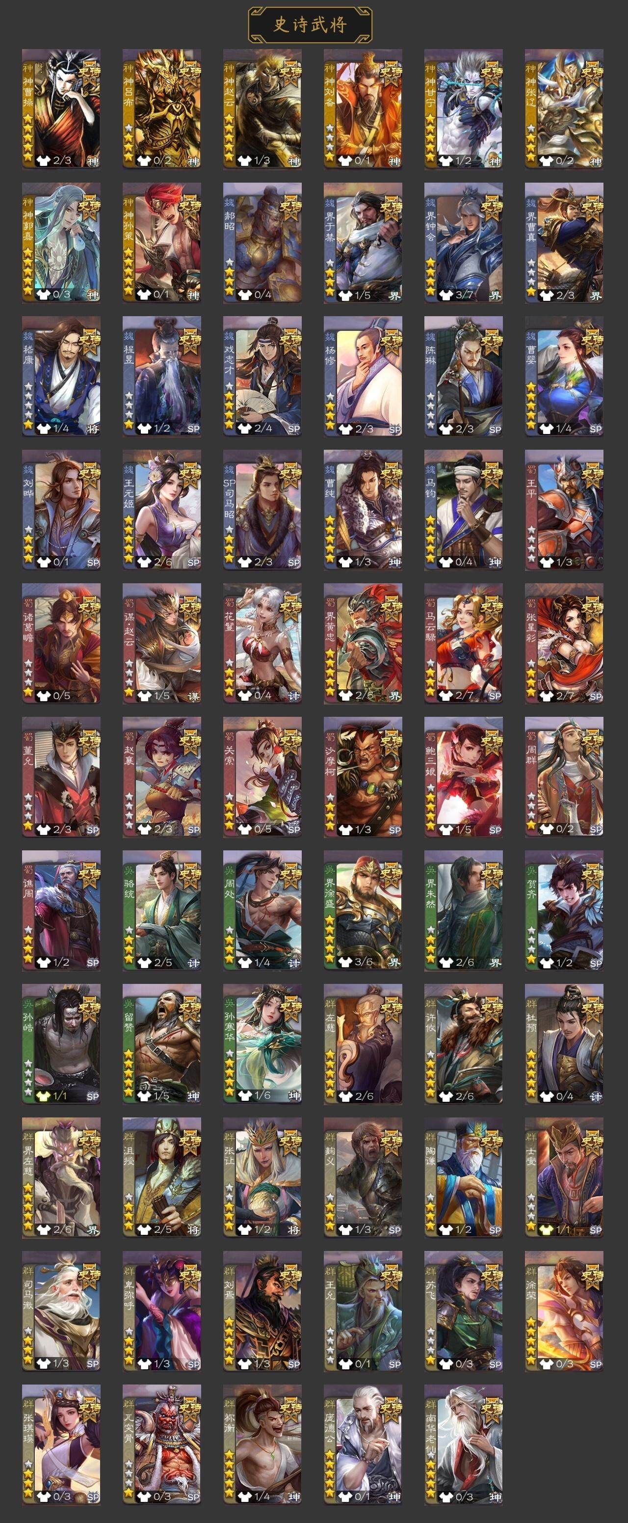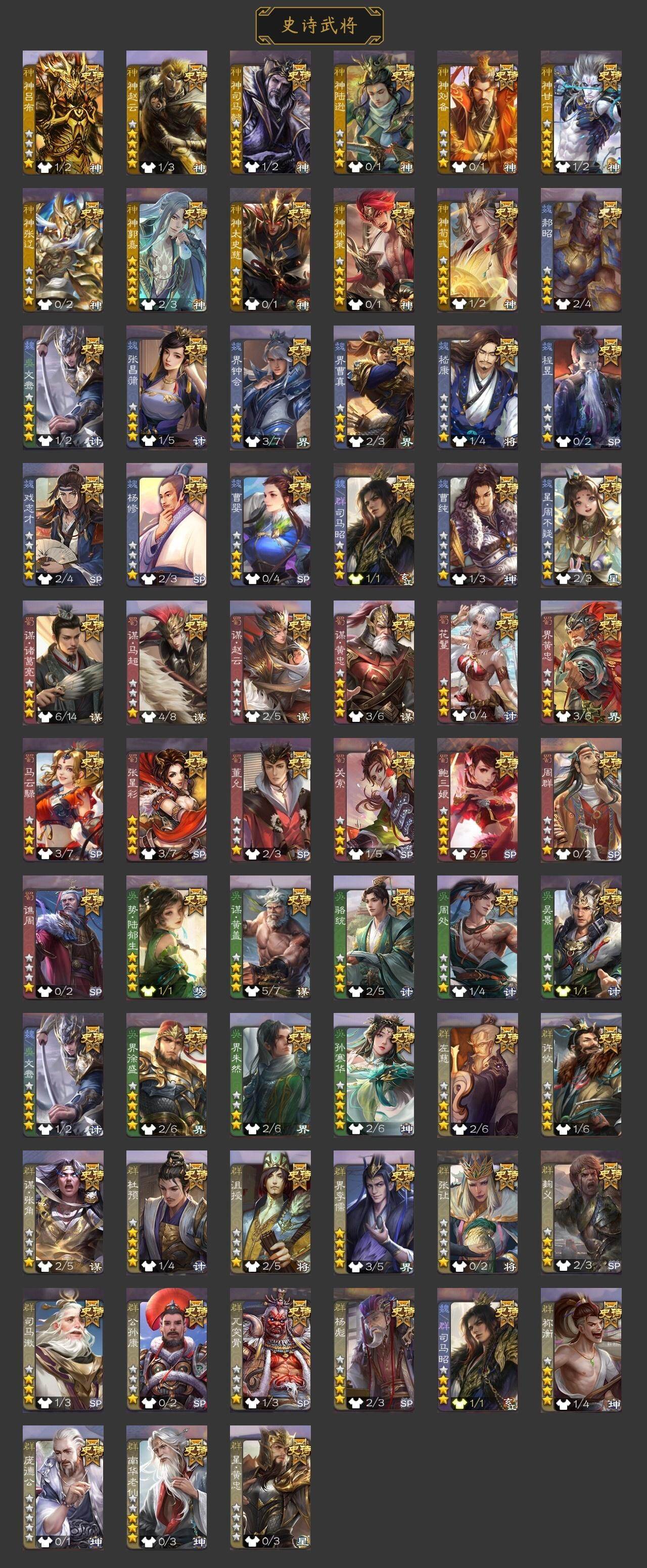 官阶:大将军;VIP等级:VIP10;史诗武将数量:41;动态皮肤数量:26