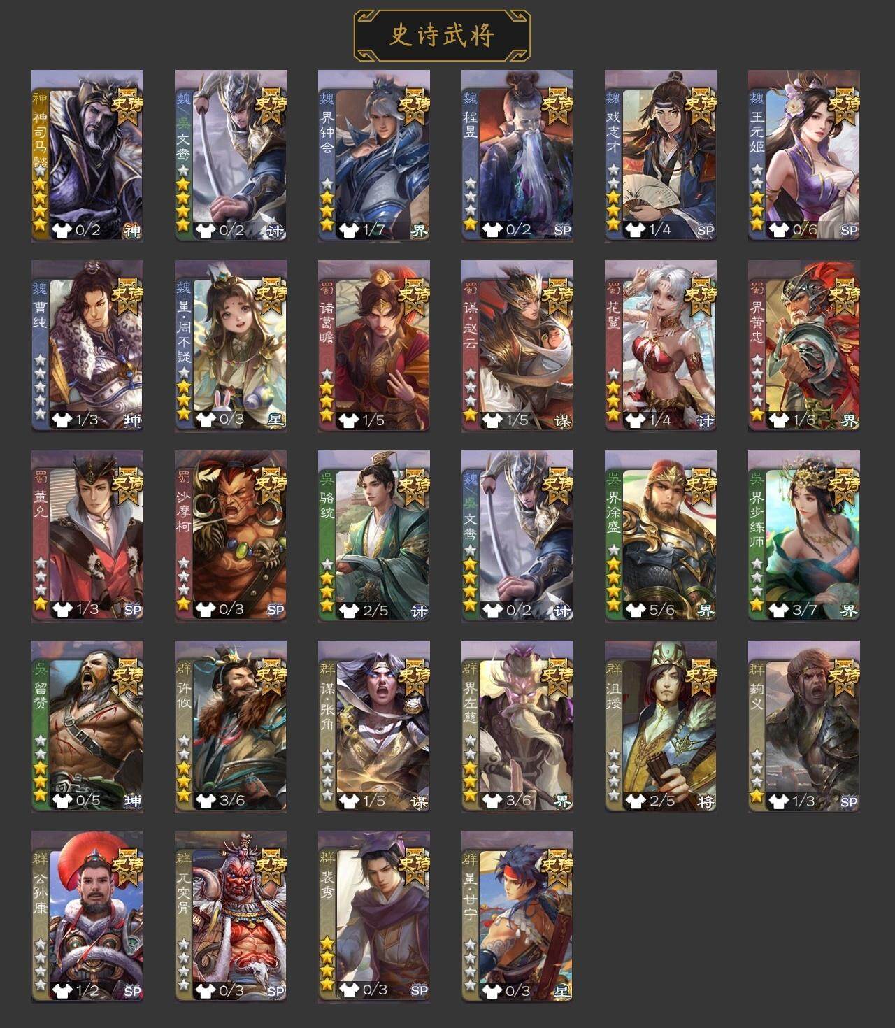 官阶:骠骑将军;VIP等级:VIP8;史诗武将数量:36;动态皮肤数量:27