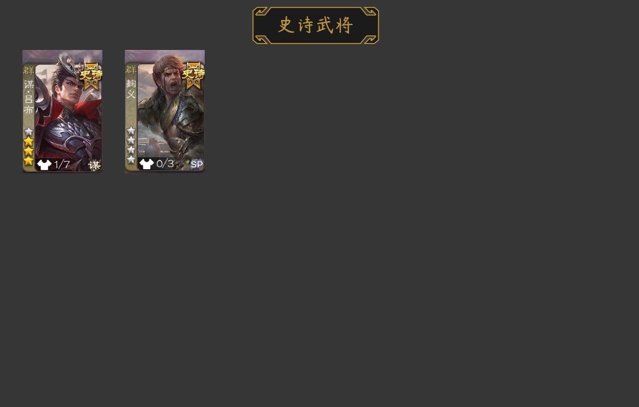 官阶:先锋将军;VIP等级:VIP1;史诗武将数量:2;动态皮肤数量:0;武将