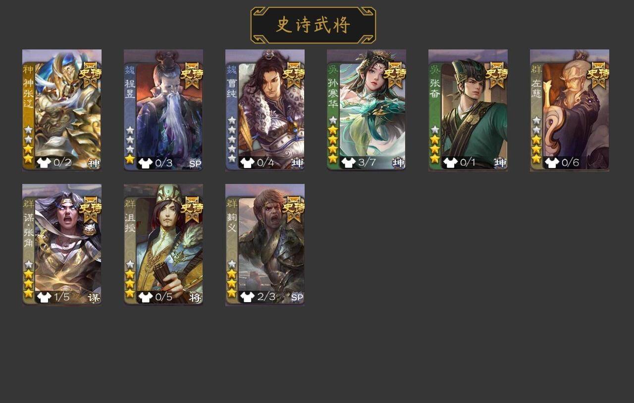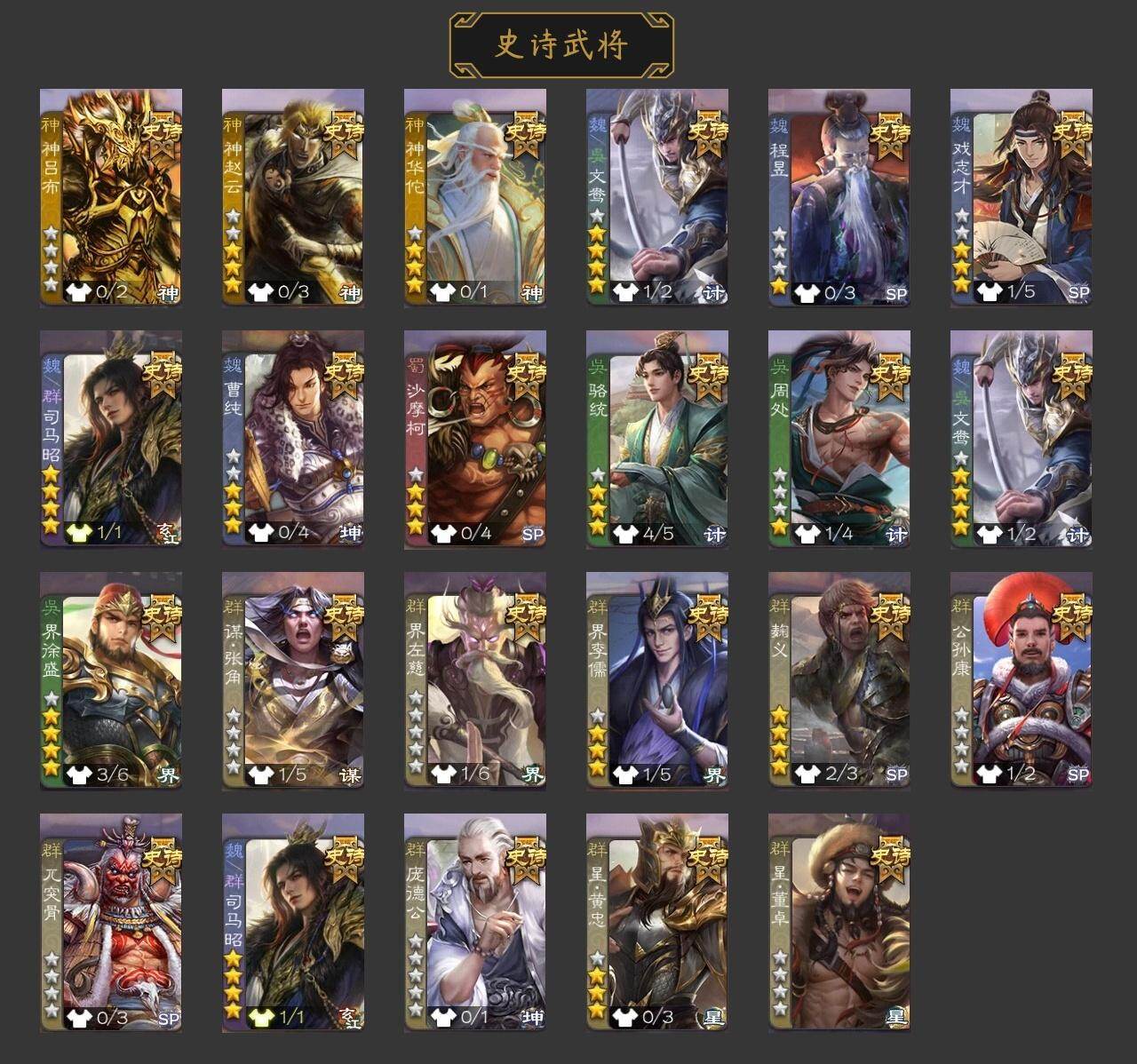 官阶:中军将军;VIP等级:VIP7;史诗武将数量:11;动态皮肤数量:4;武
