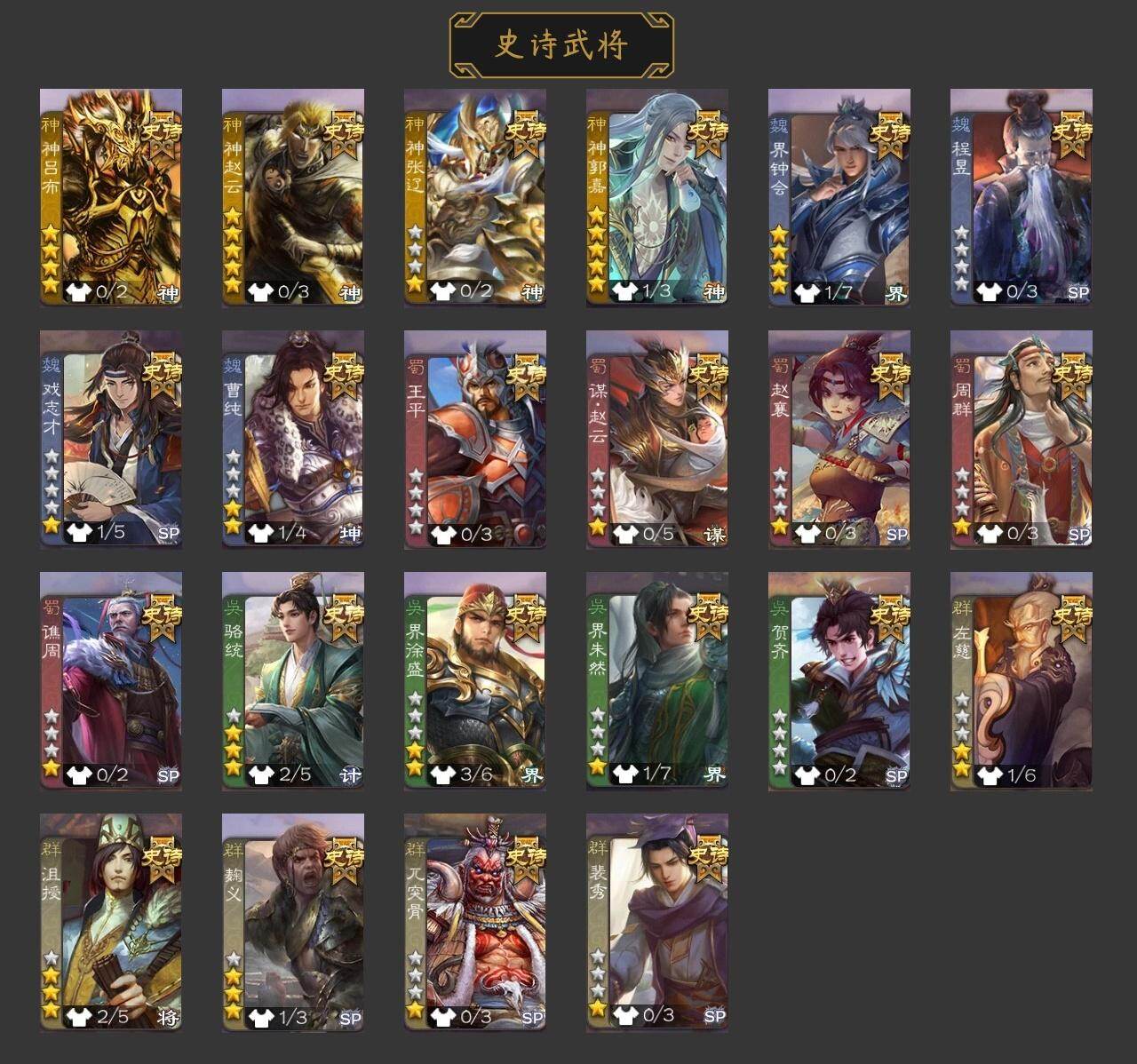 官阶:先锋及以下 VIP等级:VIP7级 史诗武将数:10 动态皮肤数:9 武