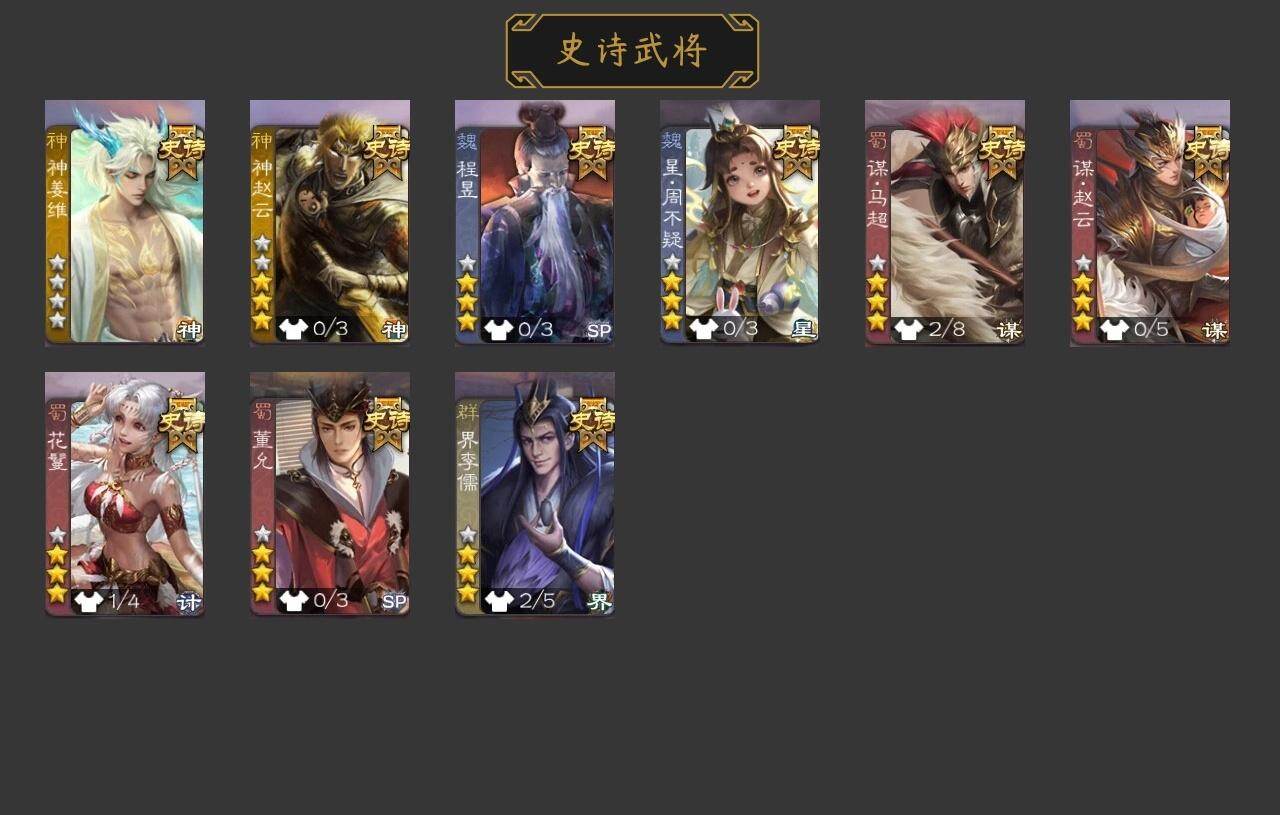 【JYSGS330】官阶:先锋及以下 VIP等级:VIP1级 史诗武将数:1