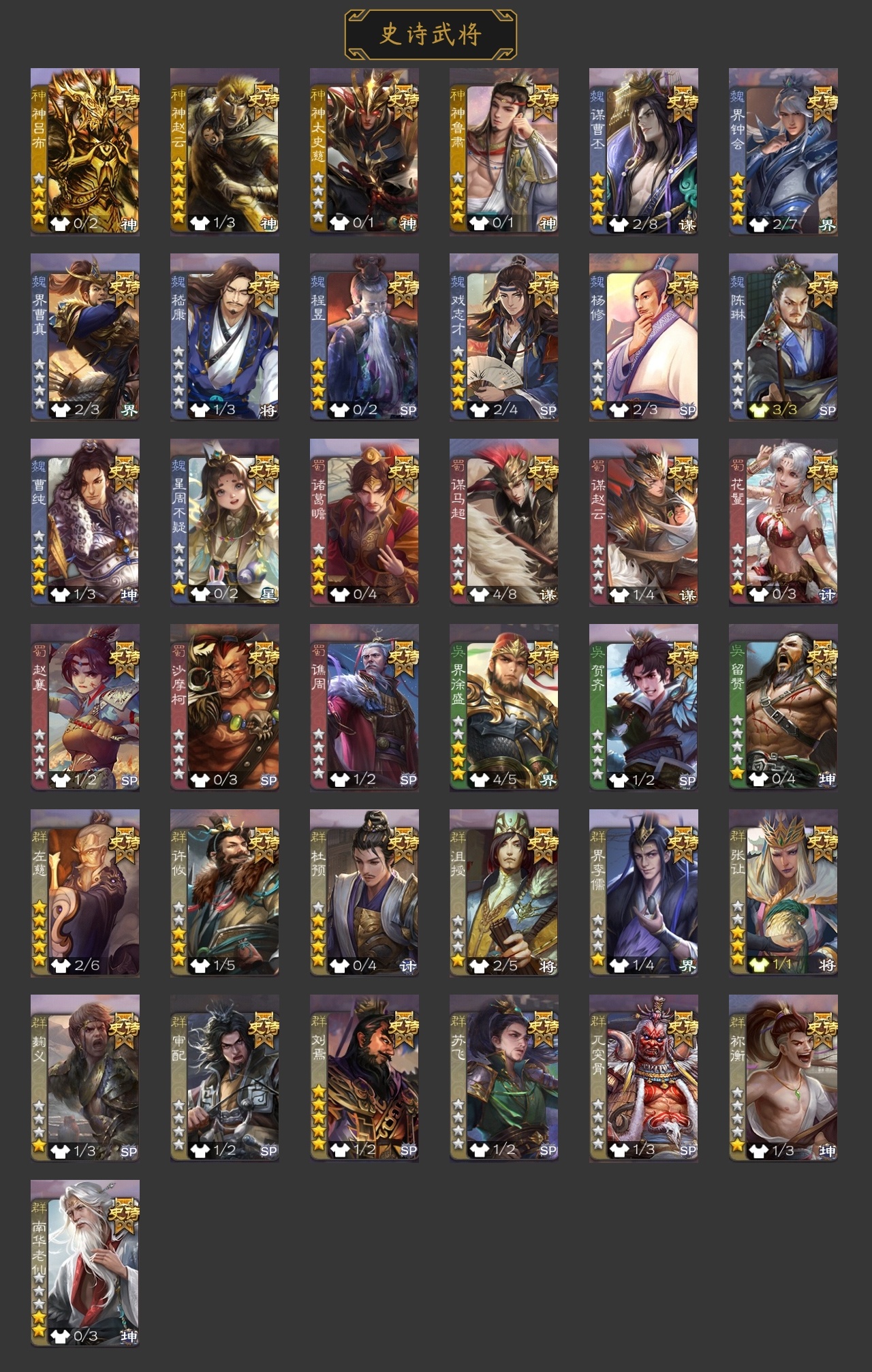 【JYSGS333】官阶:骠骑将军 VIP等级:VIP9级 史诗武将数:31