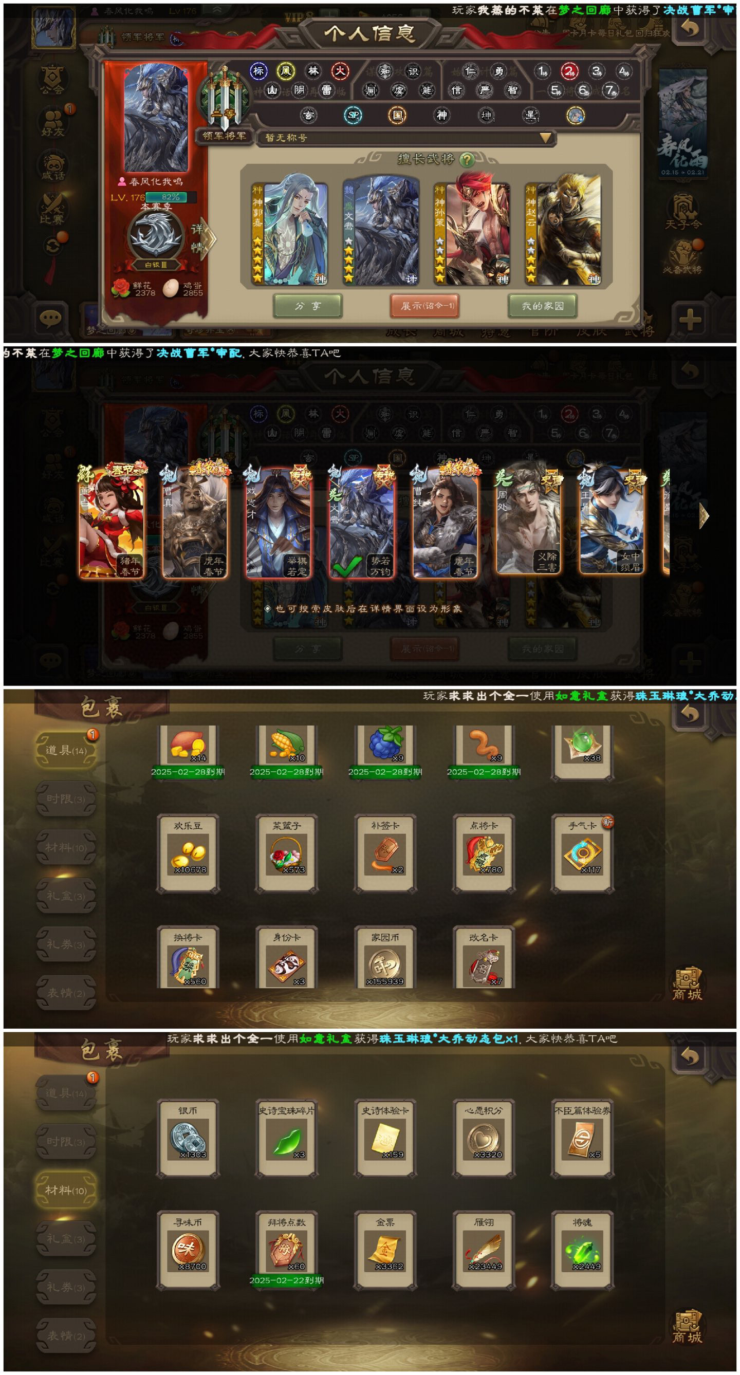 VIP等级: VIP10 官阶: 大将军 武将数量: 355 动态皮肤数量: