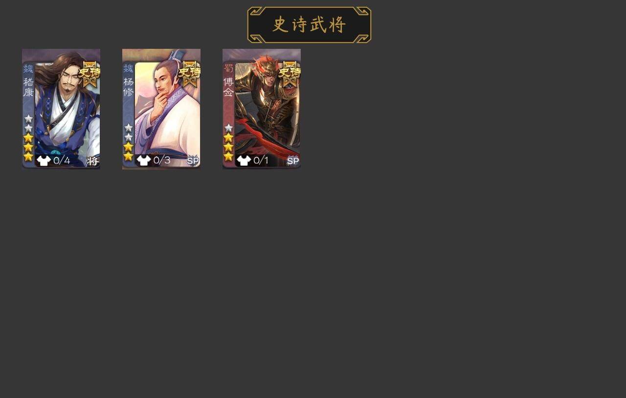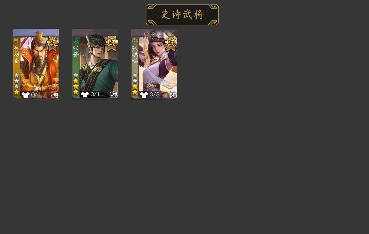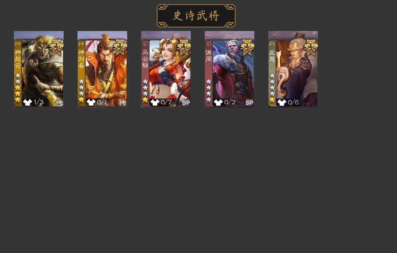 官阶:先锋将军;VIP等级:VIP1;史诗武将数量:4;动态皮肤数量:0;武将