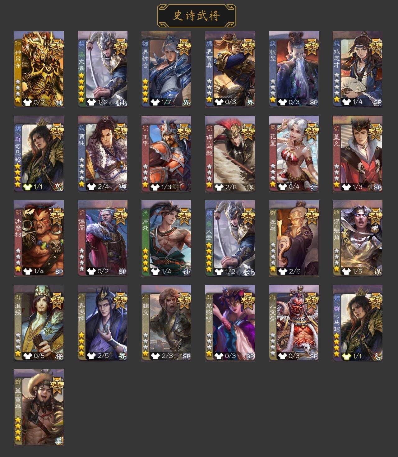 官阶:骠骑将军;VIP等级:VIP9;史诗武将数量:24;动态皮肤数量:21;