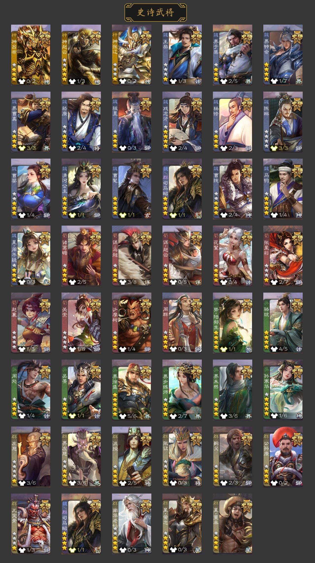 官阶:骠骑将军;VIP等级:VIP10;史诗武将数量:26;动态皮肤数量:18