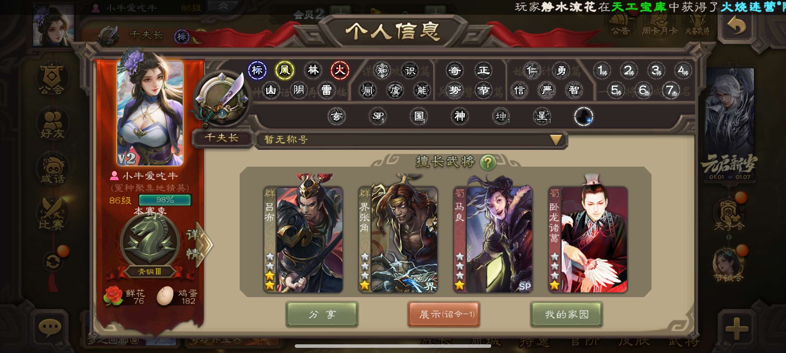 中军将军,9史诗(谋关羽➕动皮),5K浆糊,1.5w元宝,3动皮