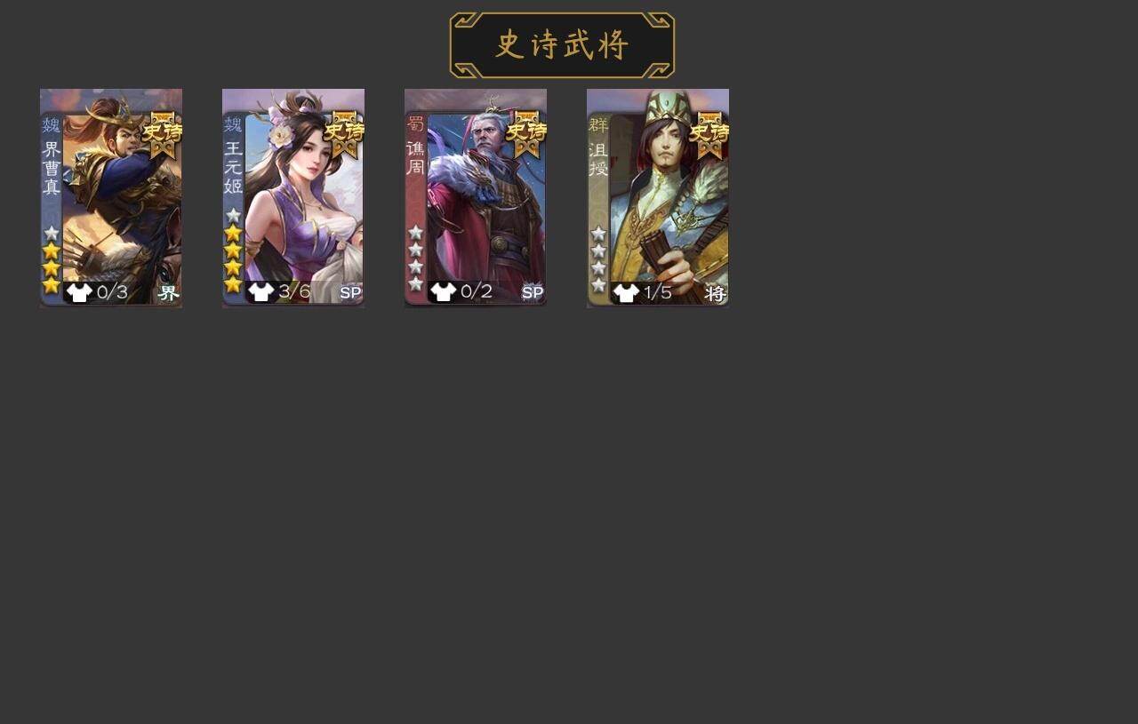 官阶:先锋将军;VIP等级:VIP1;史诗武将数量:4;动态皮肤数量:4;武将