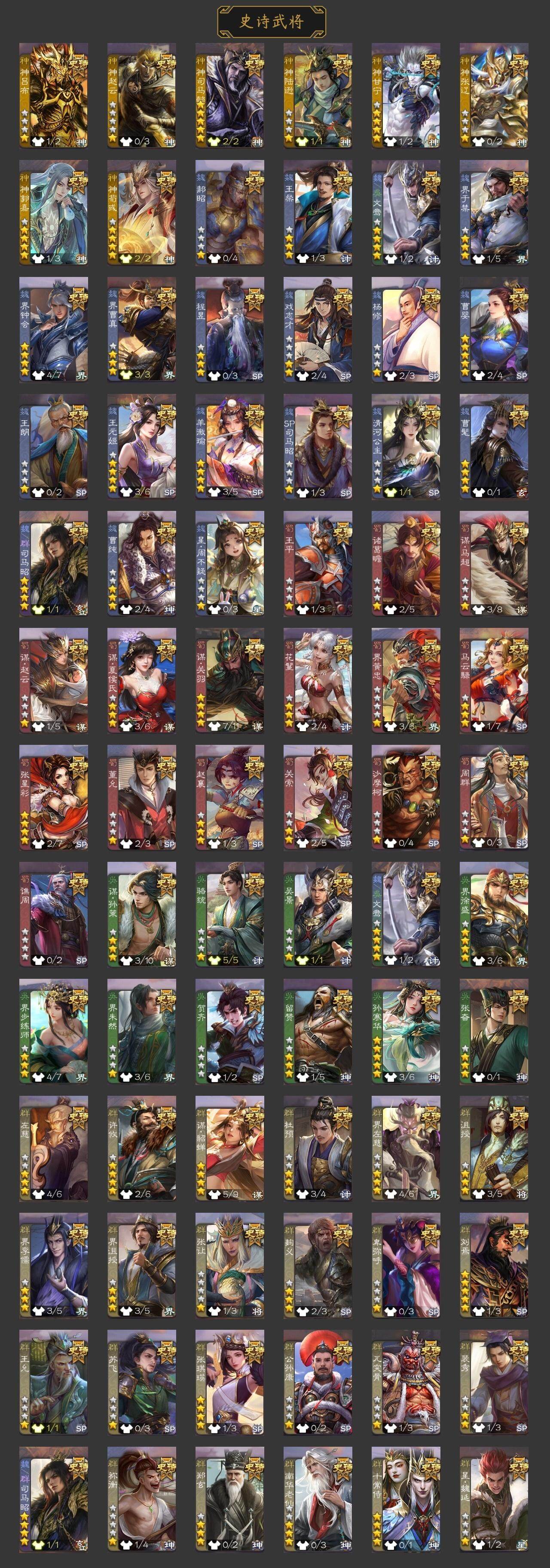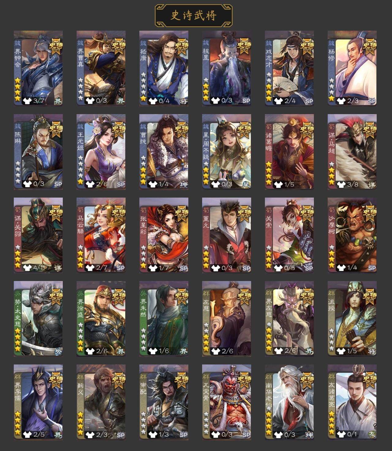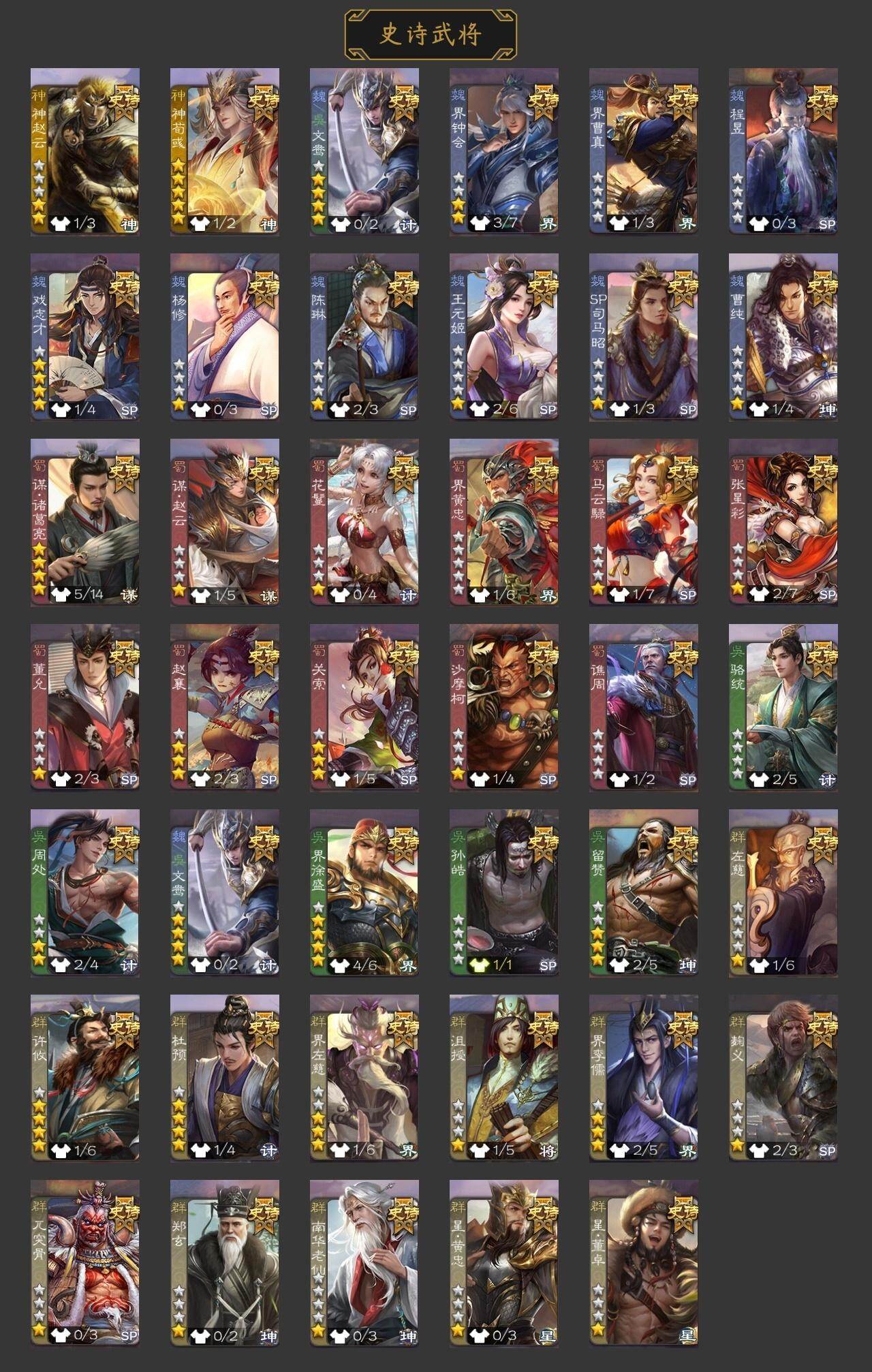 官阶:骠骑将军;VIP等级:VIP7;史诗武将数量:30;动态皮肤数量:19;