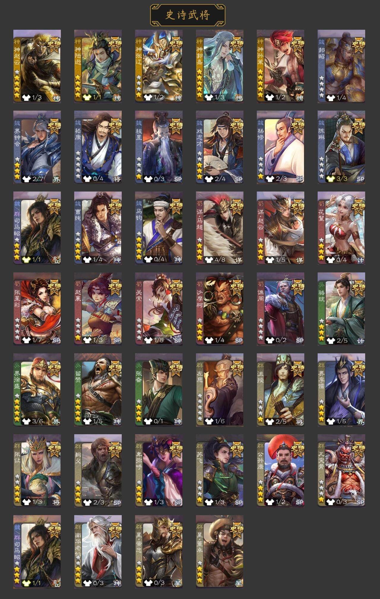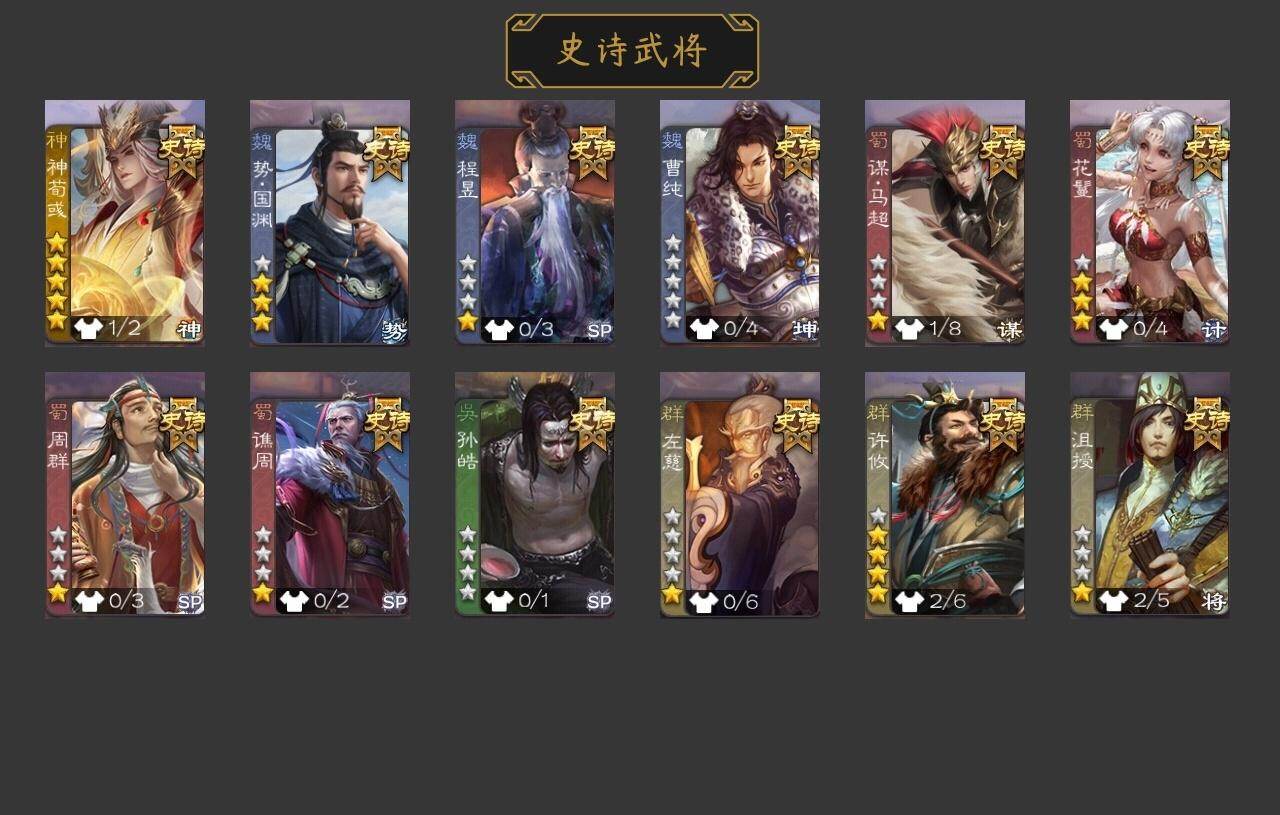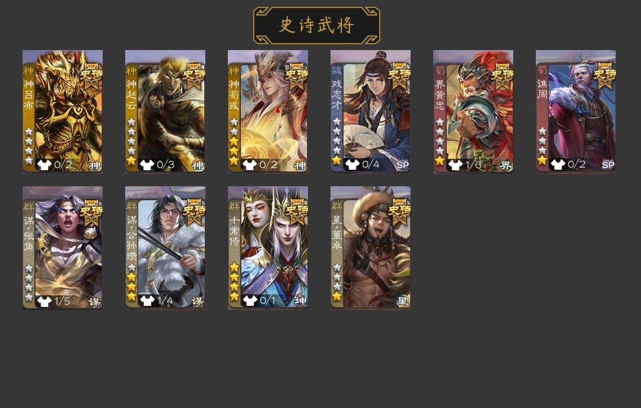 官阶:中军将军;VIP等级:VIP4;史诗武将数量:9;动态皮肤数量:2;武将