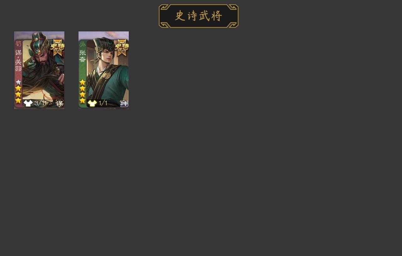 官阶:先锋将军;VIP等级:VIP1;史诗武将数量:4;动态皮肤数量:3;武将